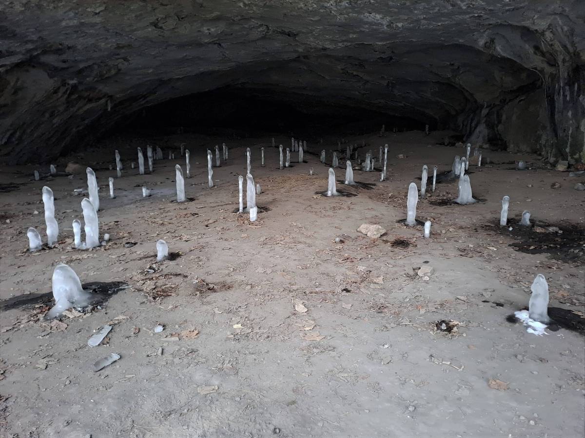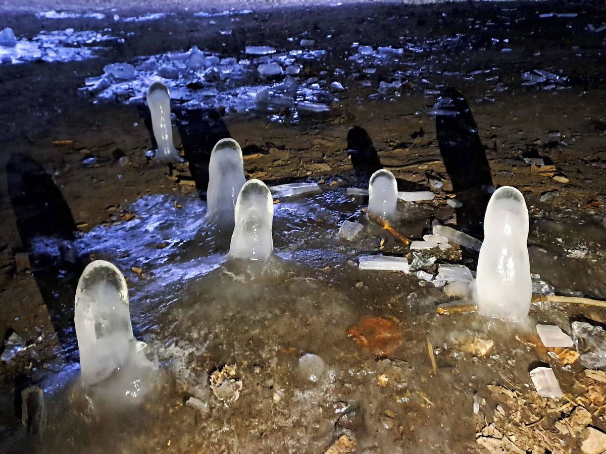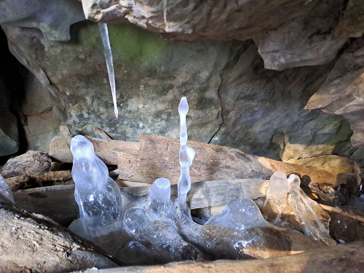 Ledové krápníky z jeskyně Pekárny.