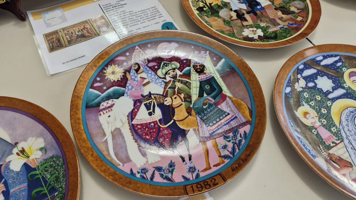 Malované talíře s betlémskými výjevy jsou z Německa.