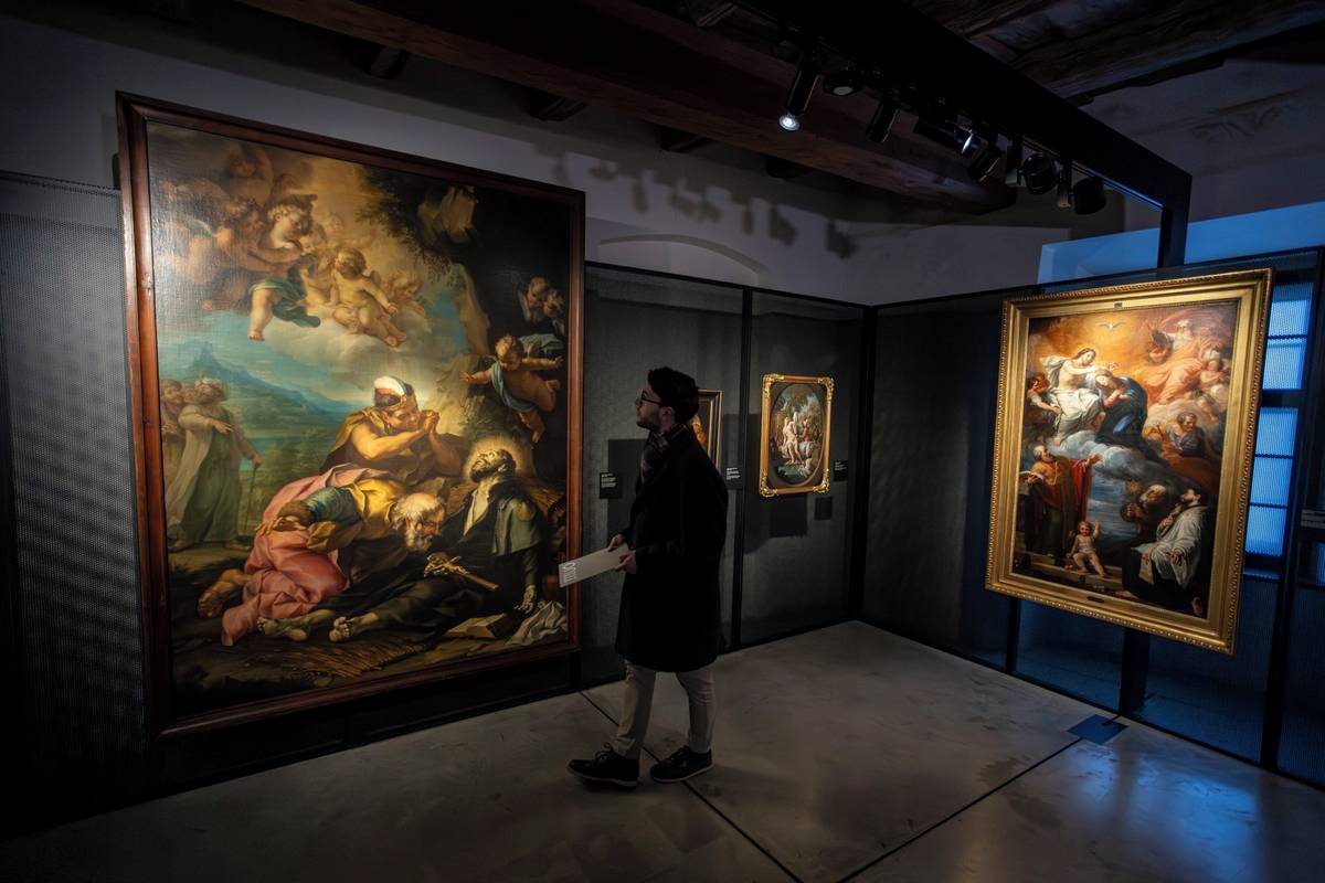 Na fotografii z výstavy Idea krásy, kterou lze v olomouckém Arcidiecézním muzeu vidět do 19. dubna, je v popředí obraz Hagar a Ismael na poušti od Piera Francesca Moly.