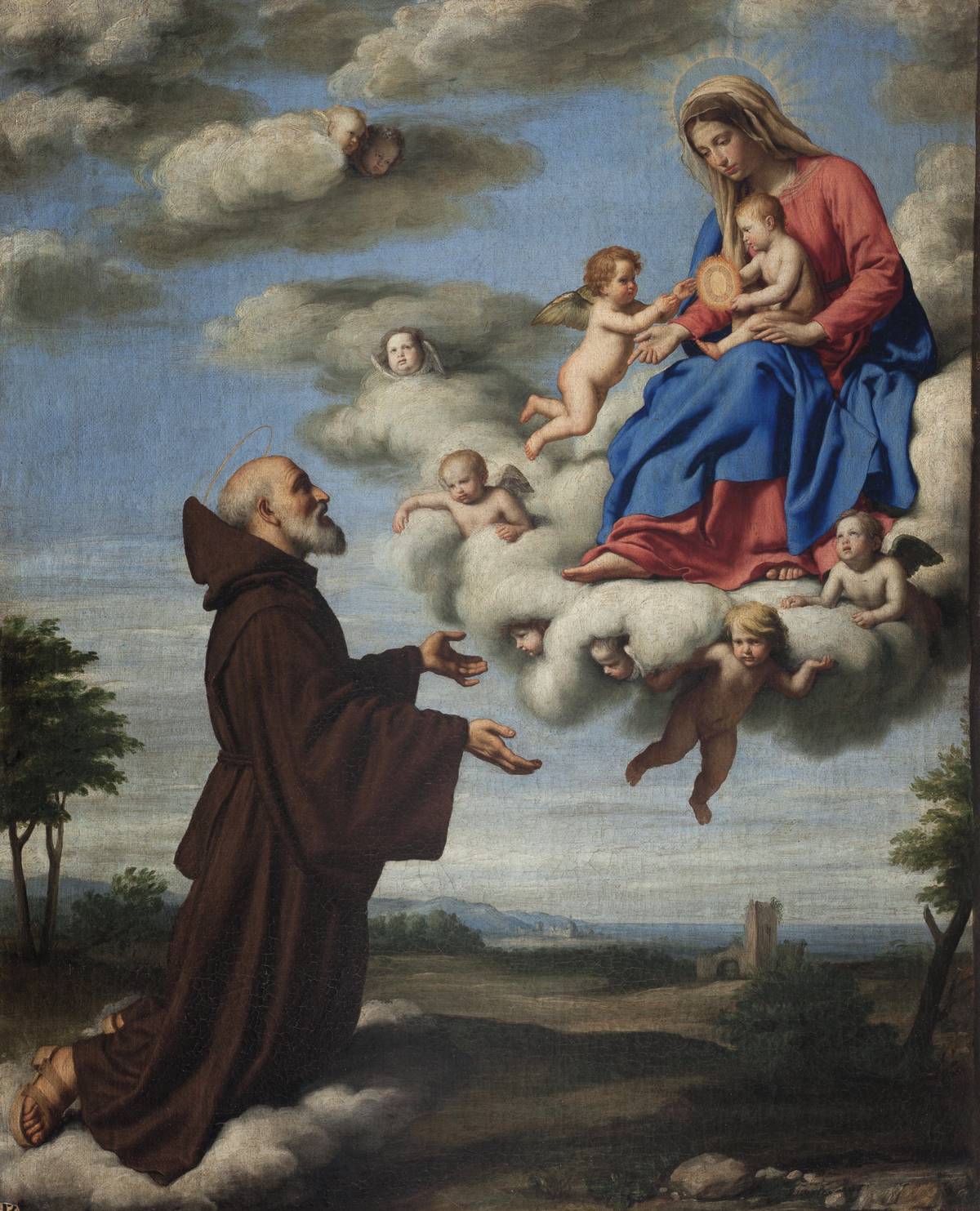 Giovanni Battista Salvi zvaný Sassoferrato (1609–1685): Madona se zjevuje sv. Františkovi z Pauly, olej na plátně, Národní galerie v Praze.