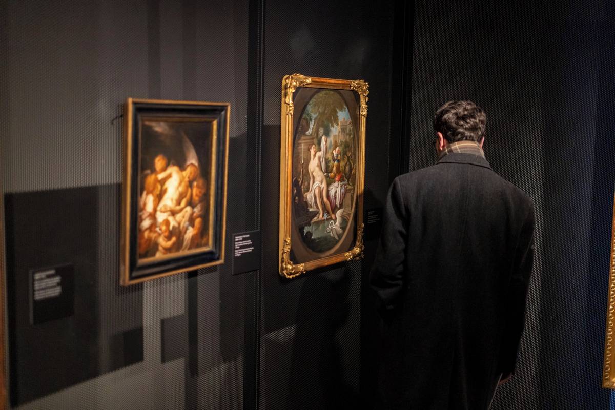 Na snímku si návštěvník prohlíží obraz Betsabé v lázni od Girolama Pesciho.