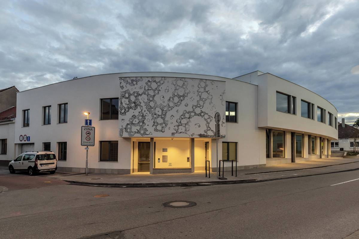 Multifunkční objekt ve Šlapanicích, na jehož podobě se autorsky podílel Josef Zlamal.