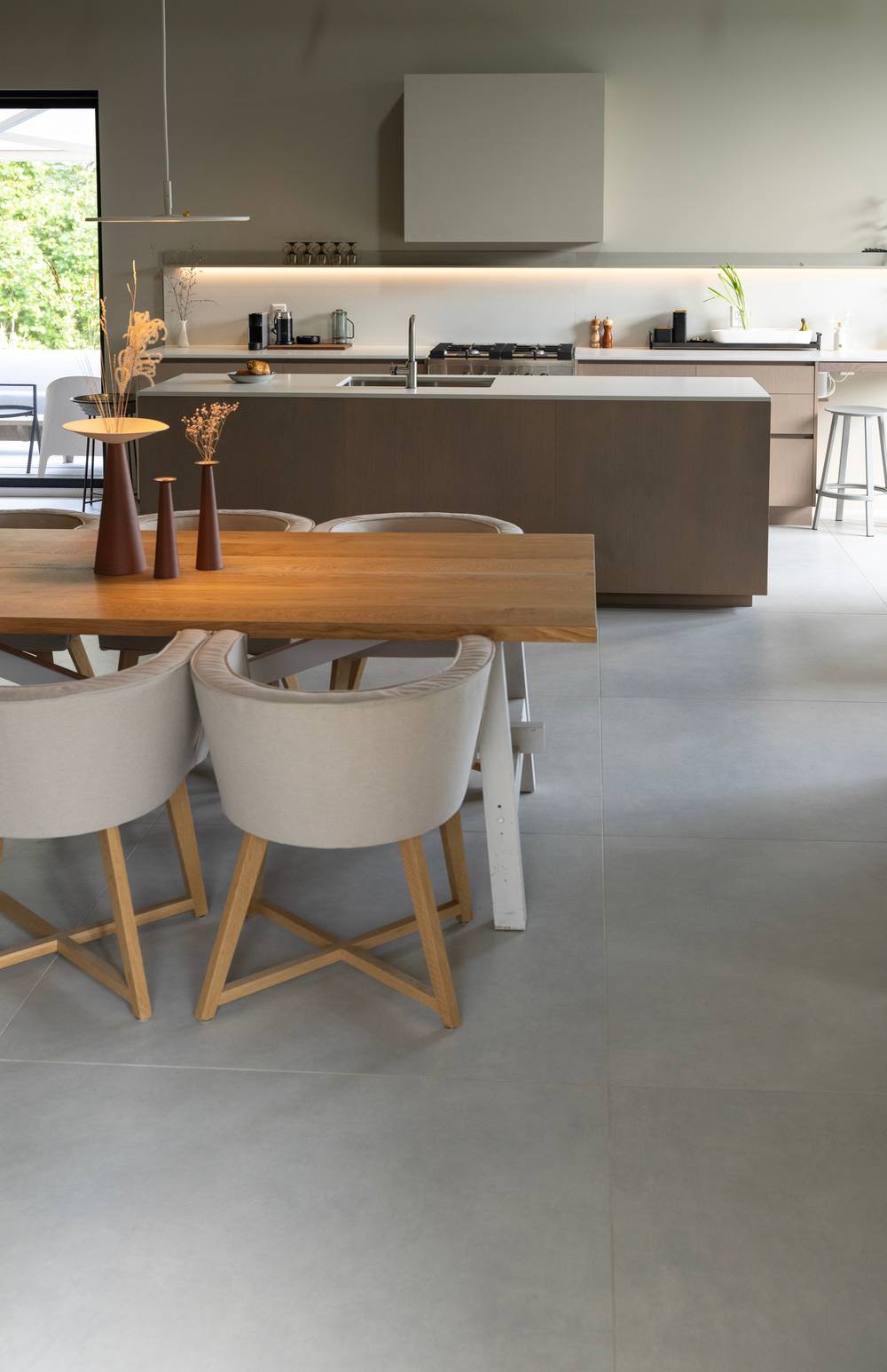 Hlavní obytný prostor tvoří dohromady kuchyňská, jídelní a obývací část.