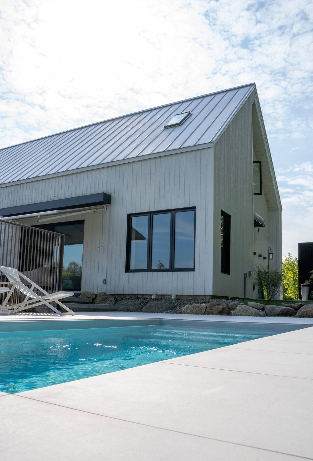Dům venku doplňuje bazén.