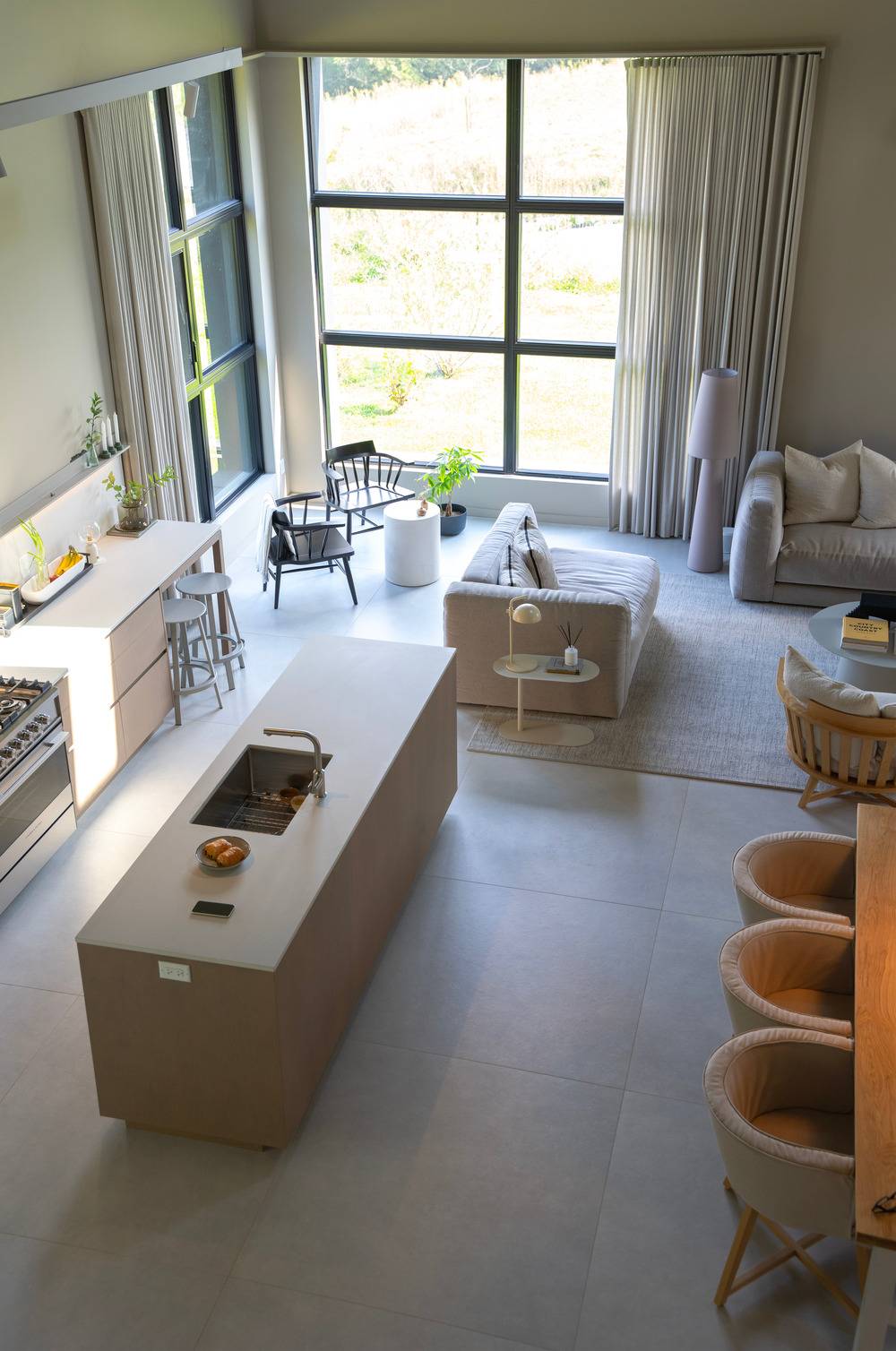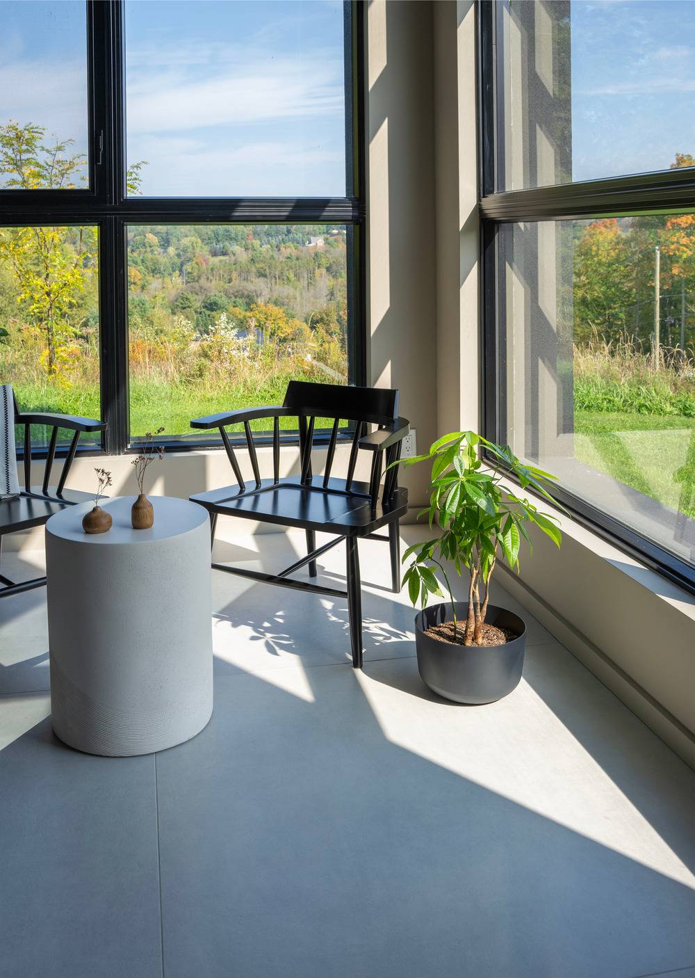 Velká okna dávají průchod spoustě denní světla do interiéru.