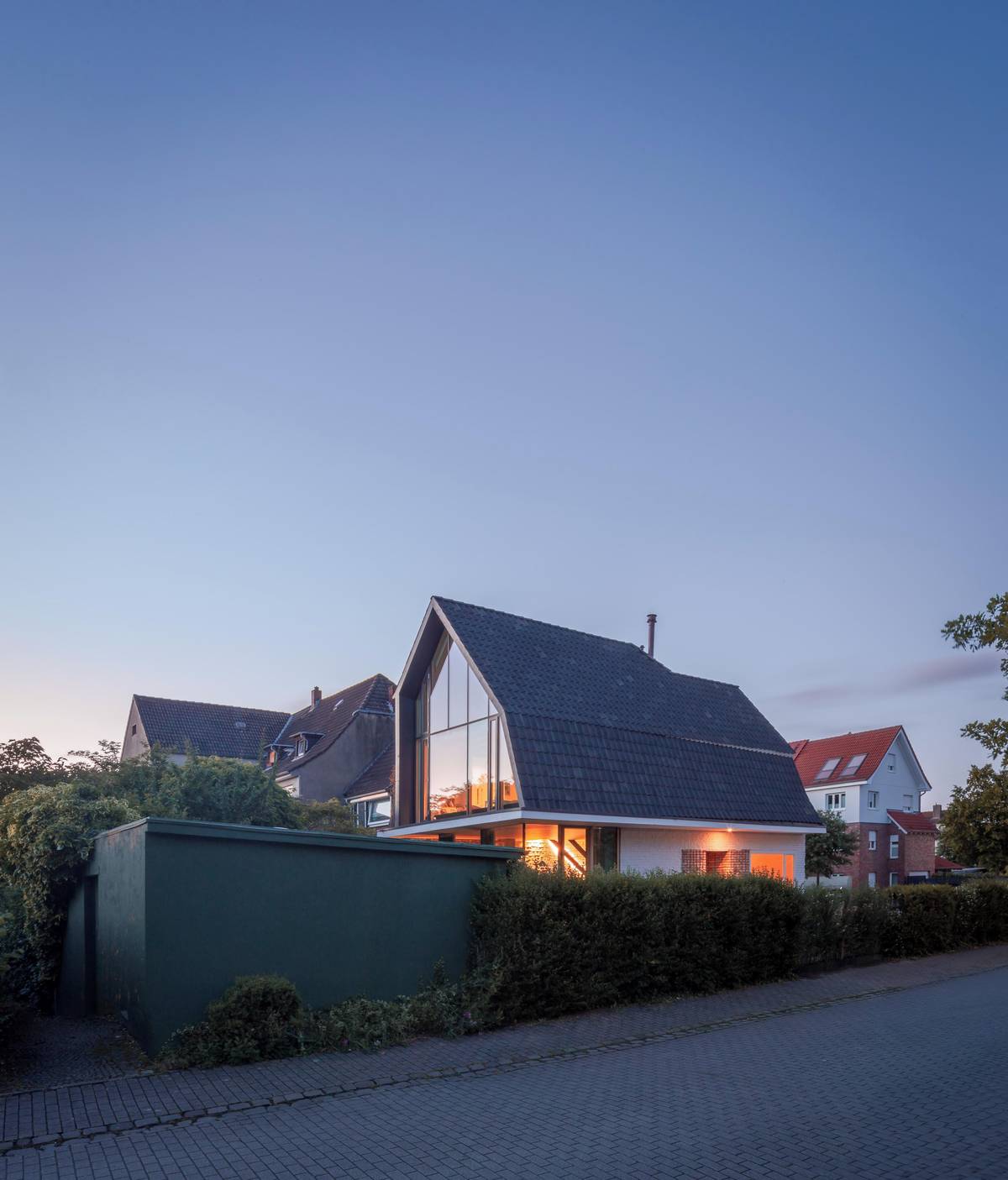Stavba působí i z ulice velmi vkusně.