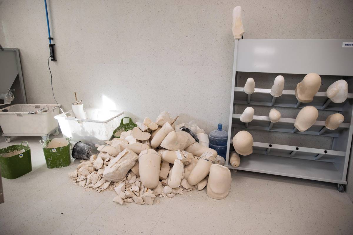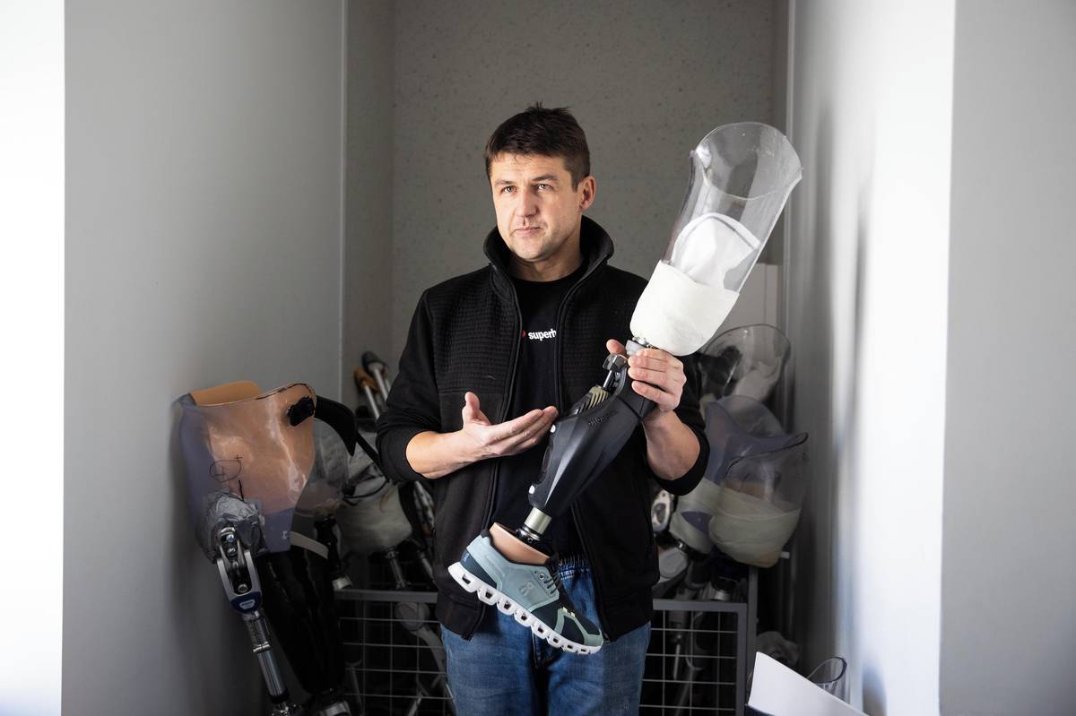 Pacienti dostanou nejprve dočasnou protézu, se kterou se učí chodit a absolvují rehabilitace. Mezitím jim tým specialistů vytvoří trvalou náhradu, říká mediální manažer centra Andrij.