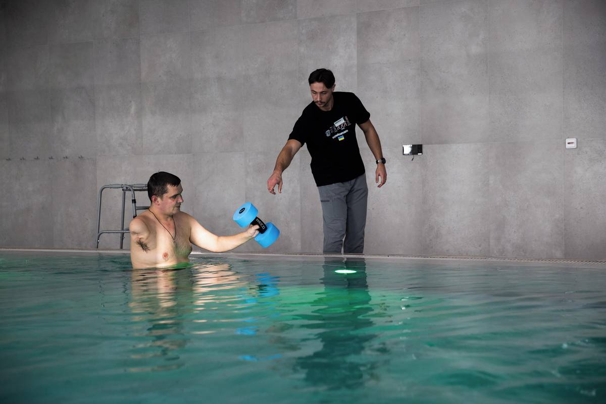Součástí areálu Superhumans je i plavecký bazén, kde rovněž probíhají rehabilitace.
