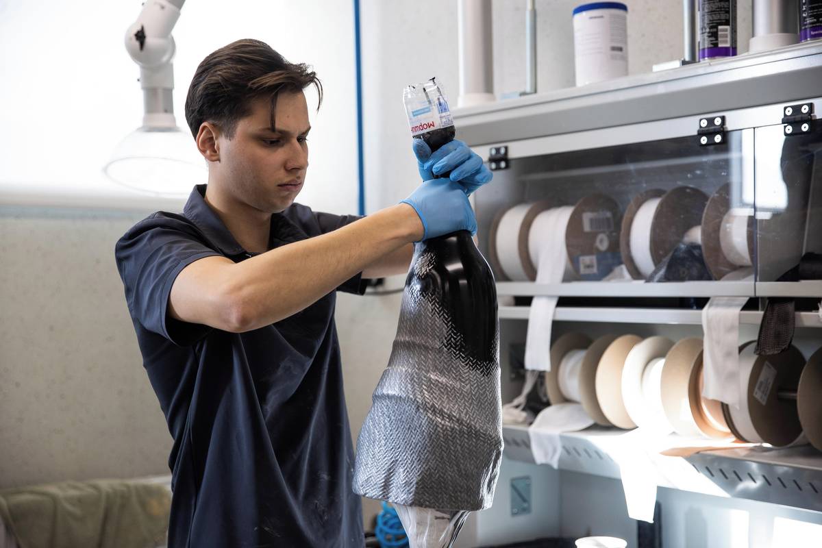 K výrobě umělých končetin se využívá karbon, který je lehký a silný zároveň, jak vysvětluje Andrij.