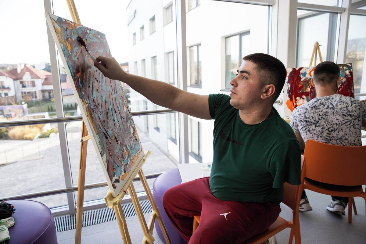 V proskleném atriu se konají lekce malování, kterých se pacienti mohou ve volném čase účastnit.