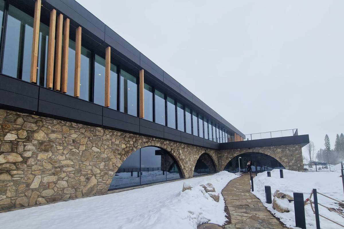 Prosklené stěny umožňují výhled na horu Klepáč. Pokud není zrovna mlha.