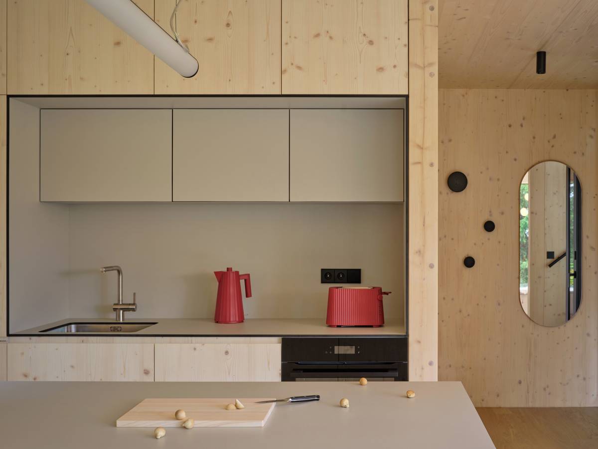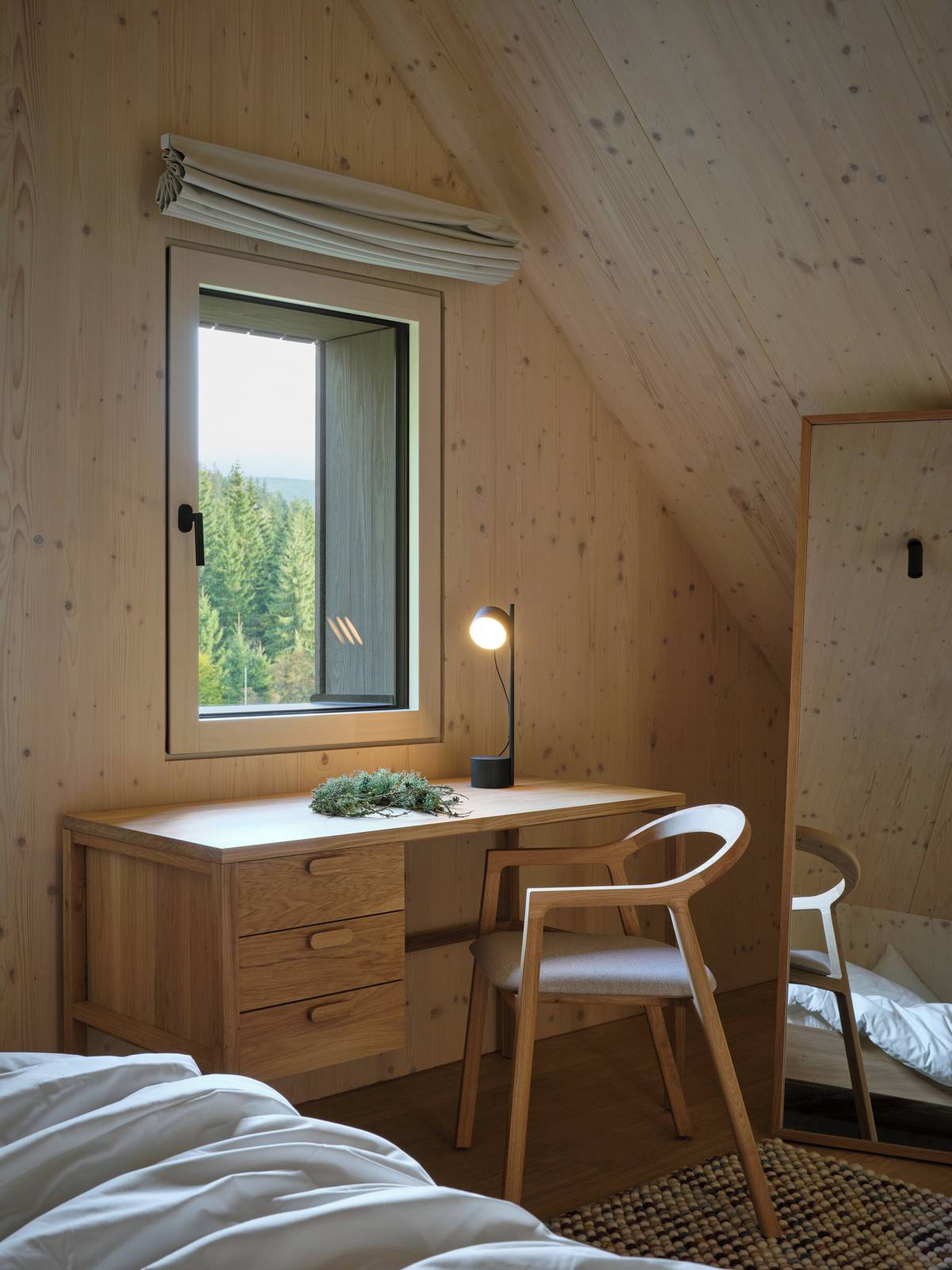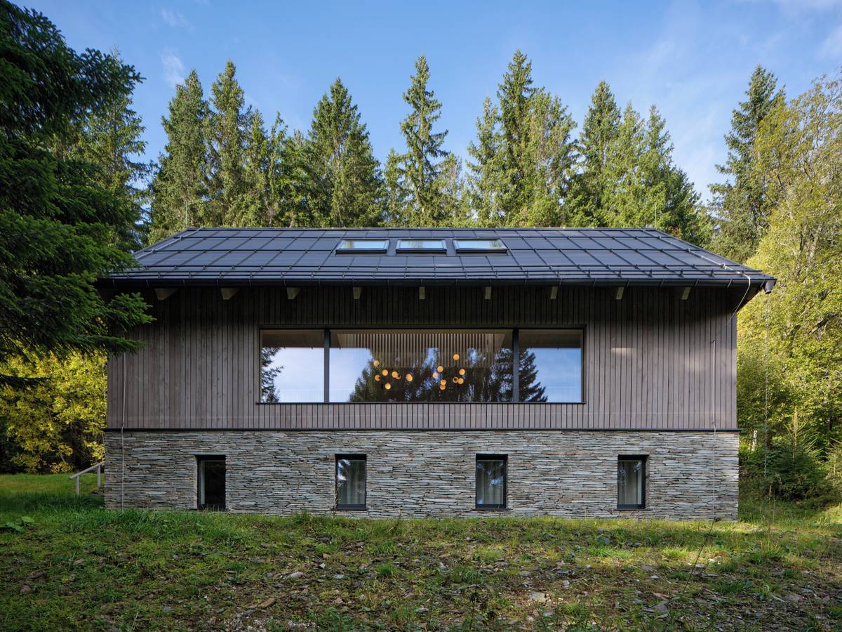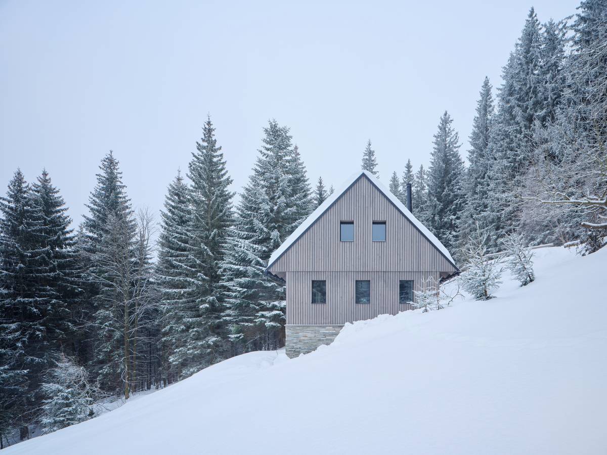 Chalupa je postavena z prefabrikovaných CLT panelů.