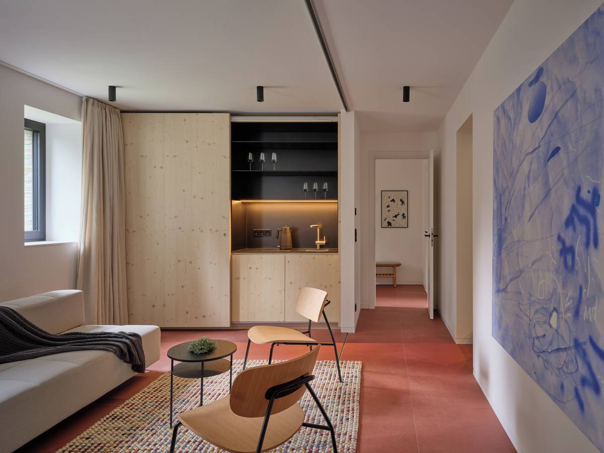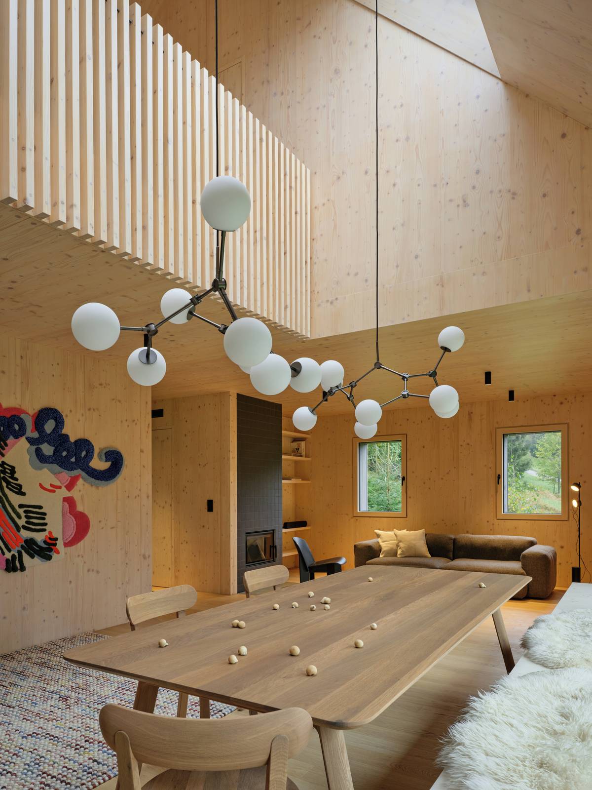 Při zařizování interiéru kladli architekti důraz na přírodní materiály.