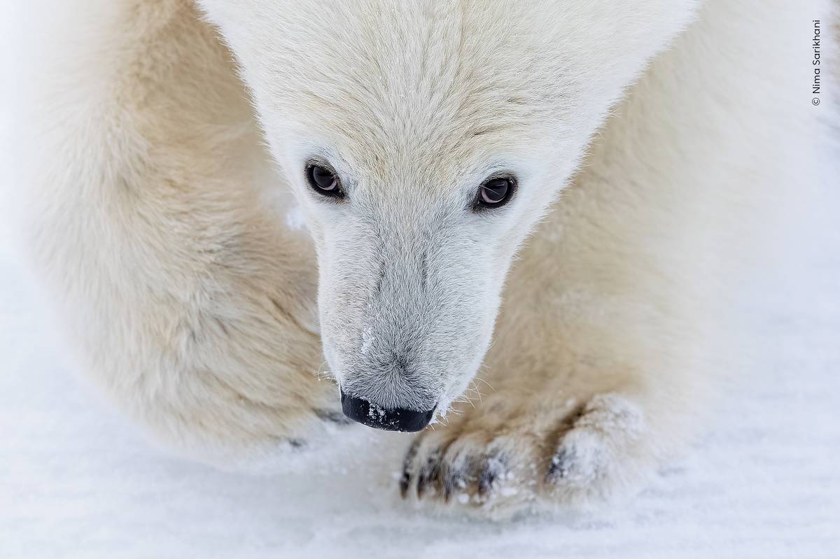 Mládě ledního medvěda se dívá do kamery, zatímco doprovází matku na neúspěšném lovu. Za fotografií ze souostroví Špicberky se skrývá smutný příběh. Medvědi se krátce po pořízení snímku přiblížili k oblasti s chatami a lidé je vyhnali. Nedlouho poté byla medvědice nalezena mrtvá ve vodě. Podle zpráv zemřela na následky vážných vnitřních zranění, mládě bylo po jejím boku. Vyfotil Nima Sarikhani.
