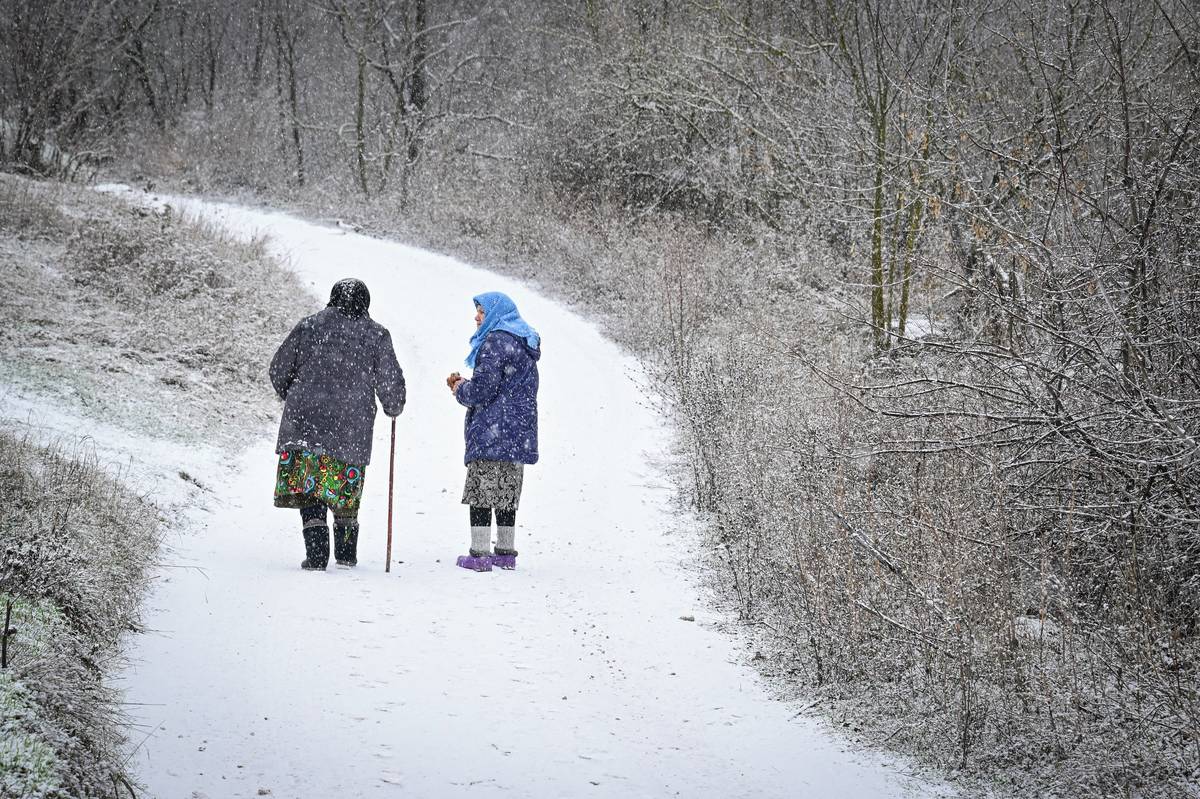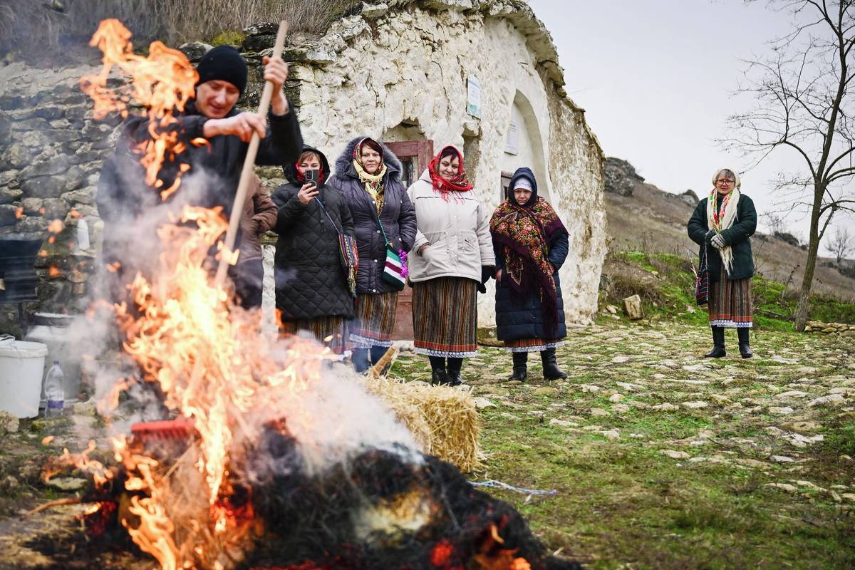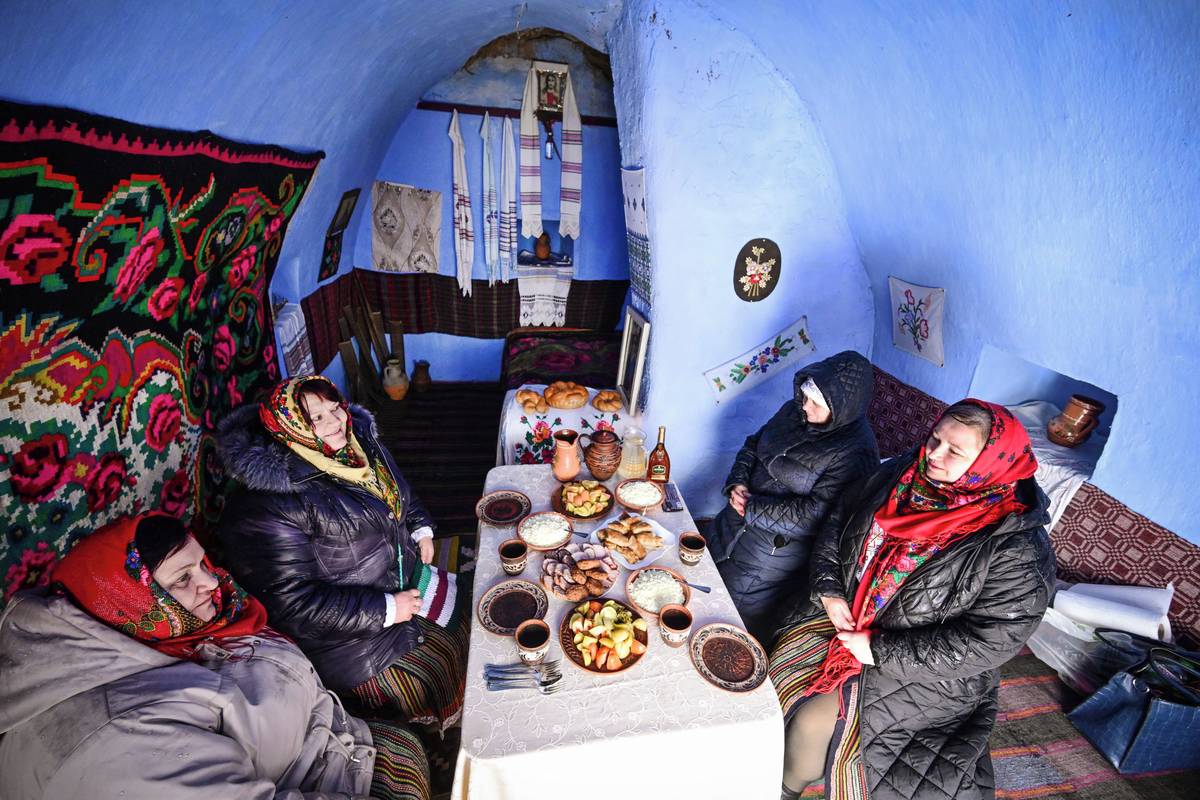 (Ženy v tradičních moldavských krojích ve vesnici Rogojeni 4. ledna.)