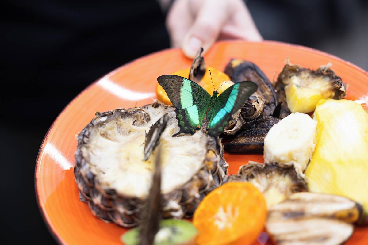 Jako občerstvení motýlům slouží sladké ovoce potřísněné alkoholem.