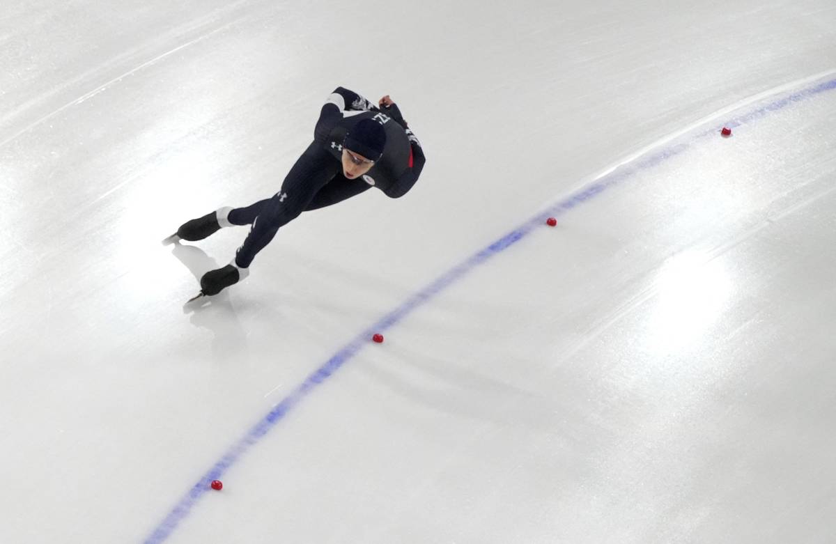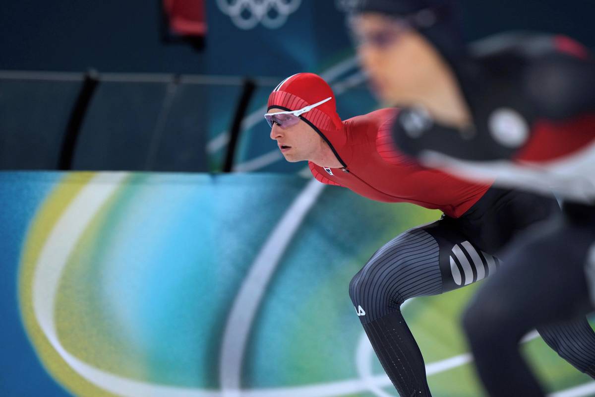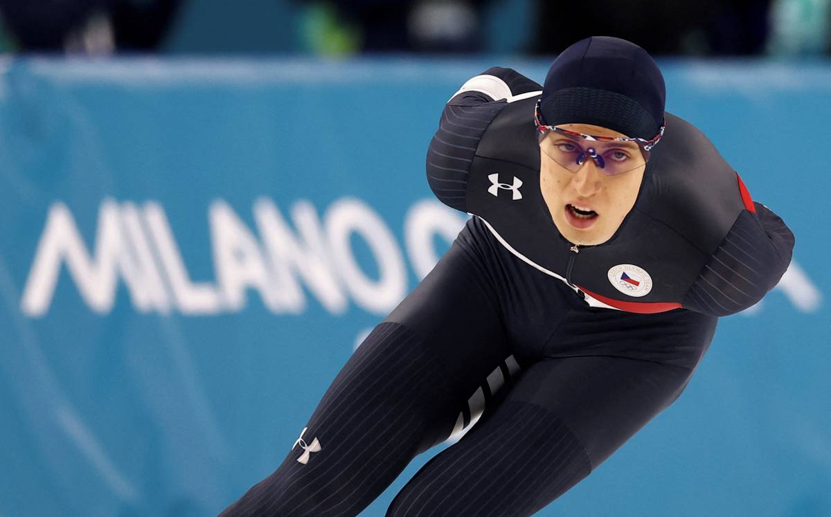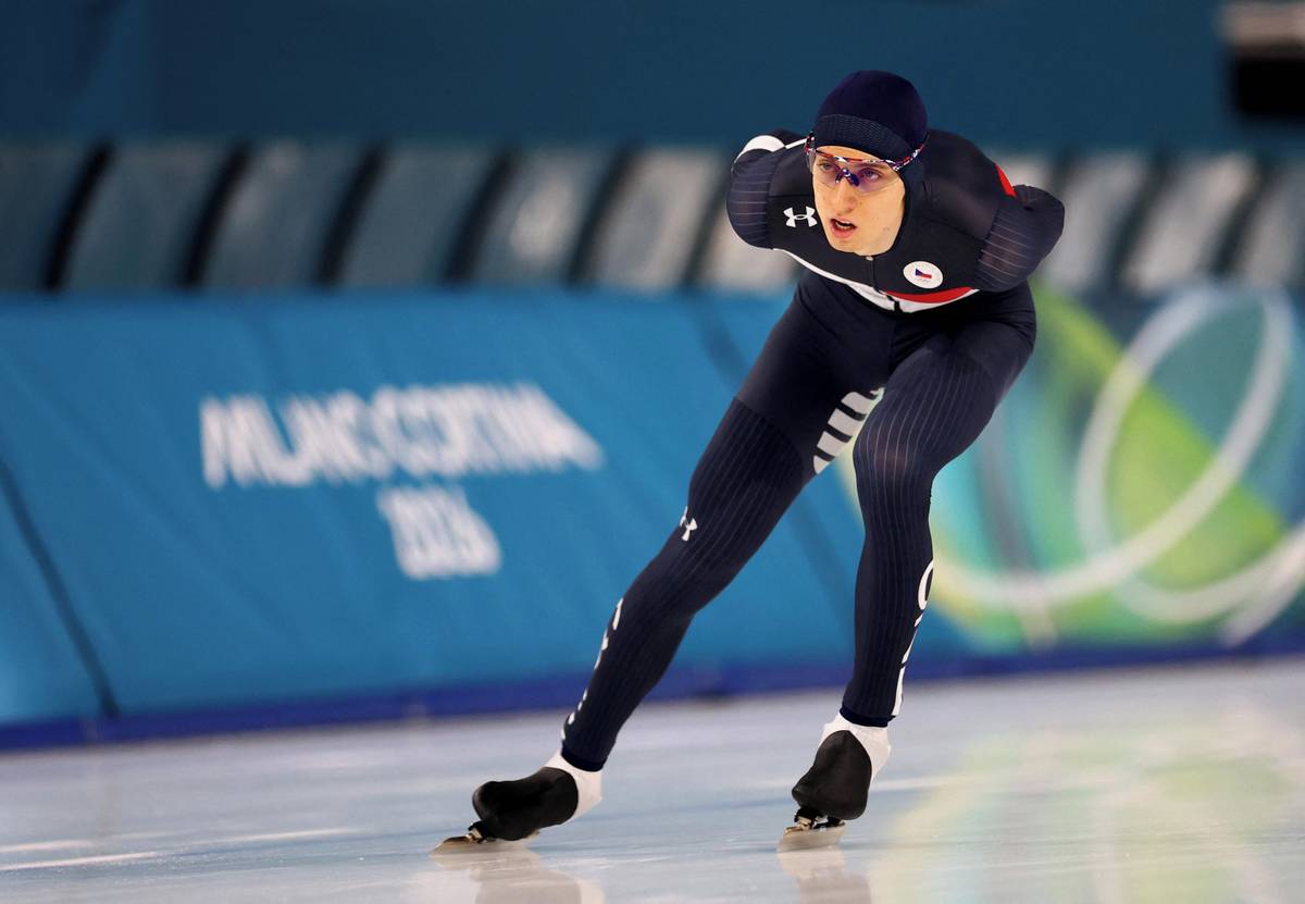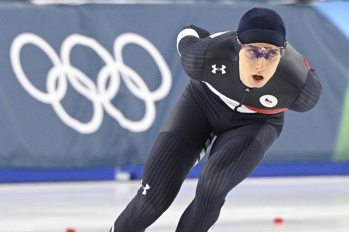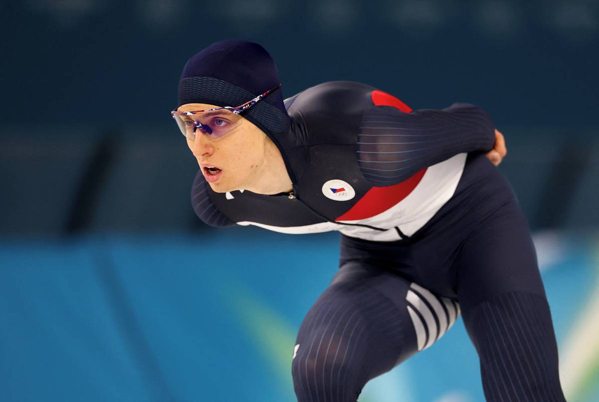 Metoděj Jílek při rozbruslení před olympijským závodem na 5 000 metrů