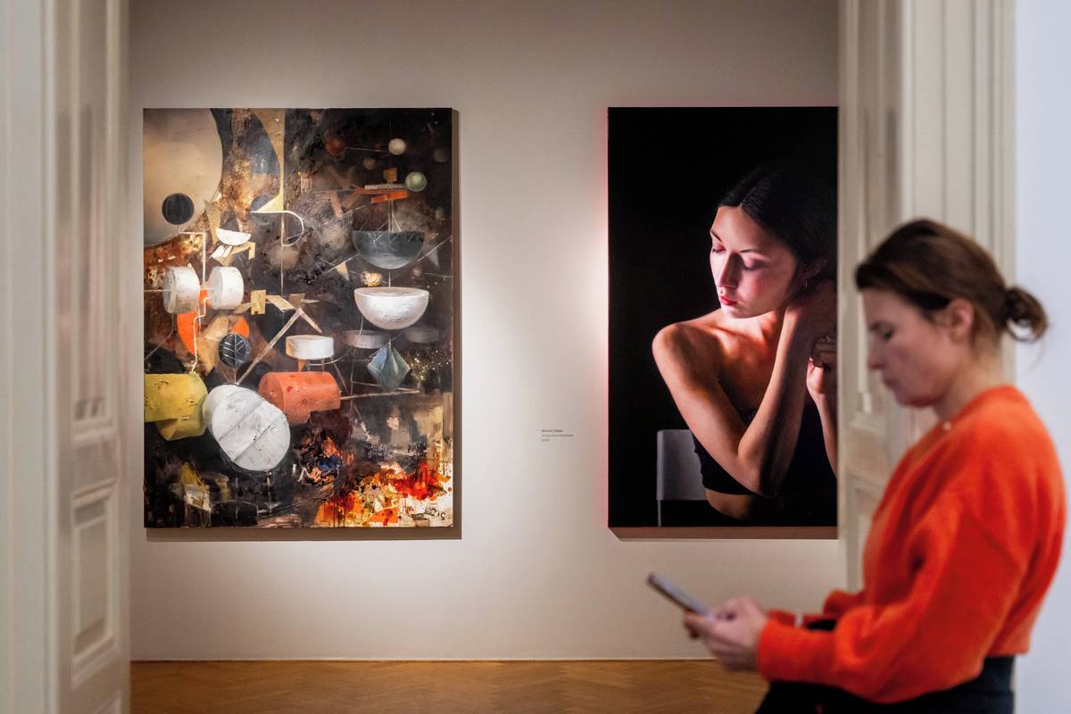 Na fotografii z výstavy Violence+, kterou lze do 22. března vidět v pražské Galerii Villa Pellé, je obraz Velká krajina od Theodora Pištěka.
