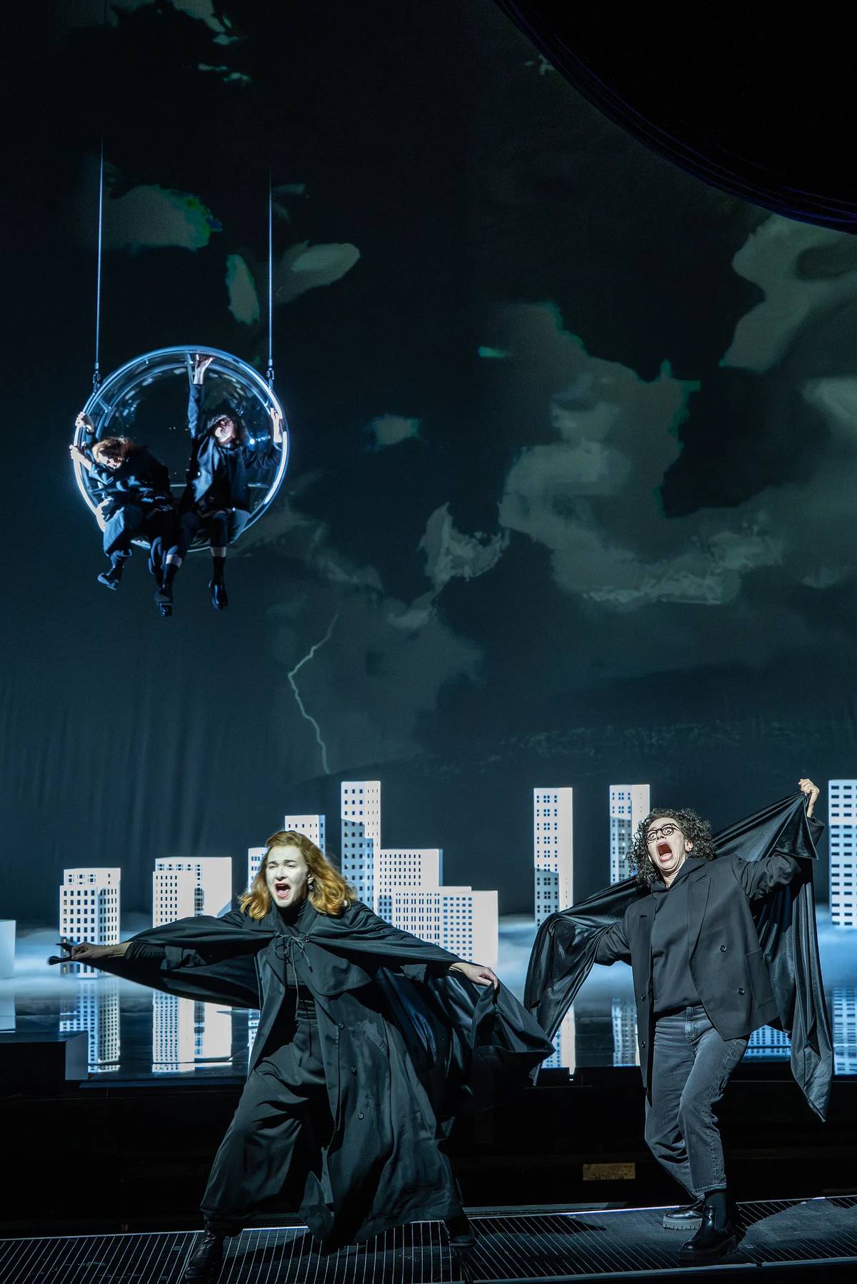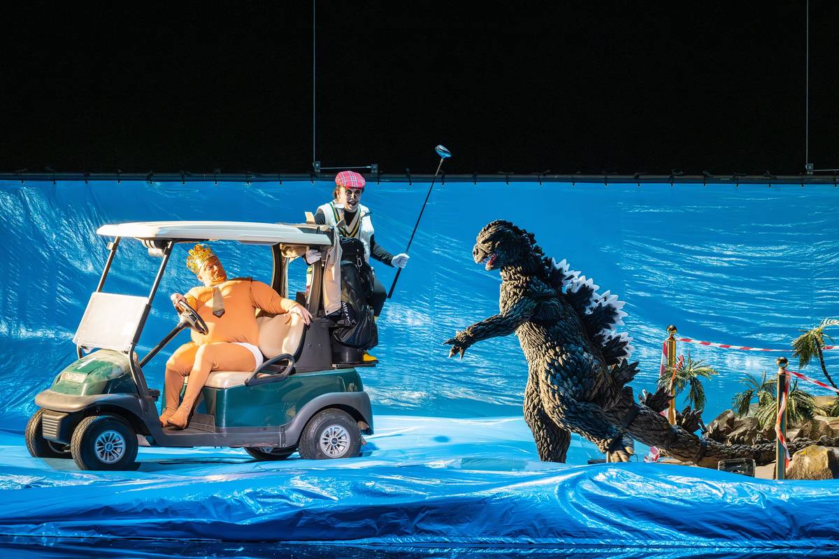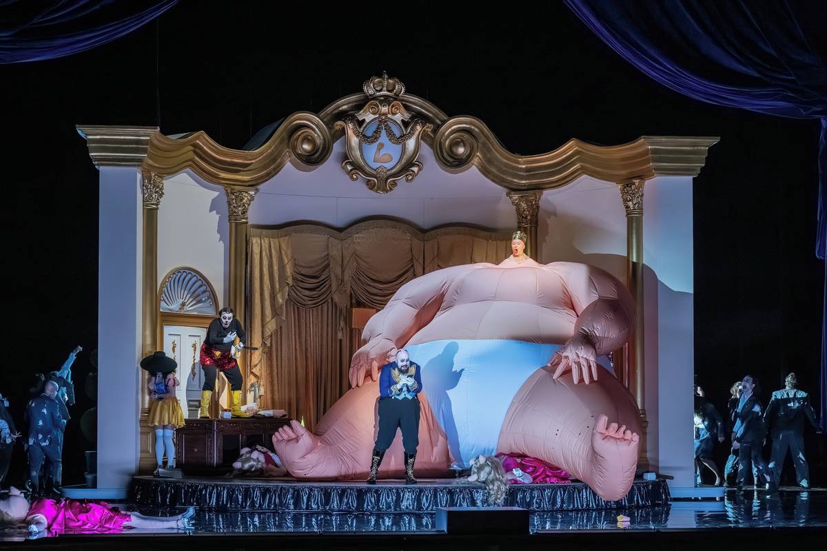 Ústřední postavu zvanou prezident král zpívá Georg Nigl (v popředí).