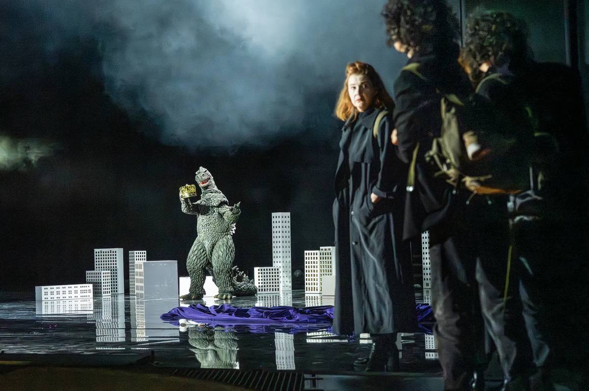 Ráj příšer měl minulý týden světovou premiéru v Hamburské státní opeře. Motiv mořské nestvůry se dostal až na její fasádu.