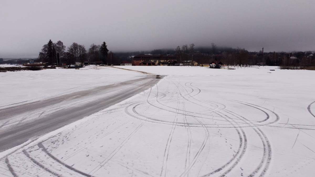 Auta stále přejíždějí přes zamrzlé Lipno.