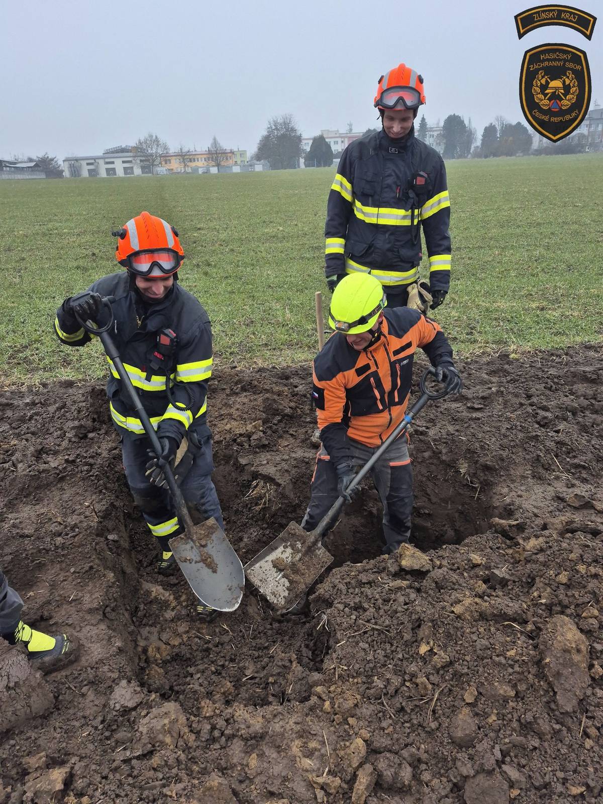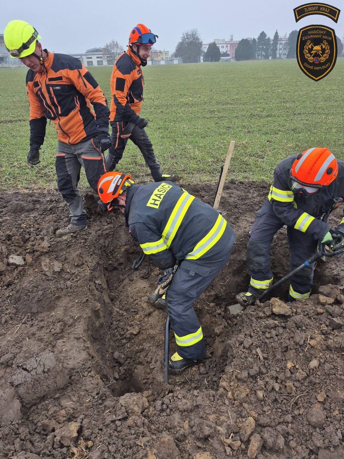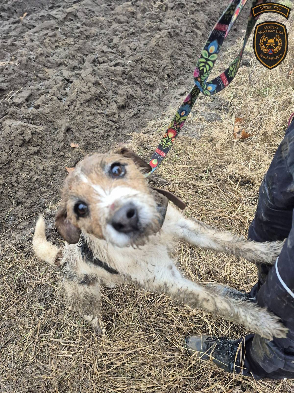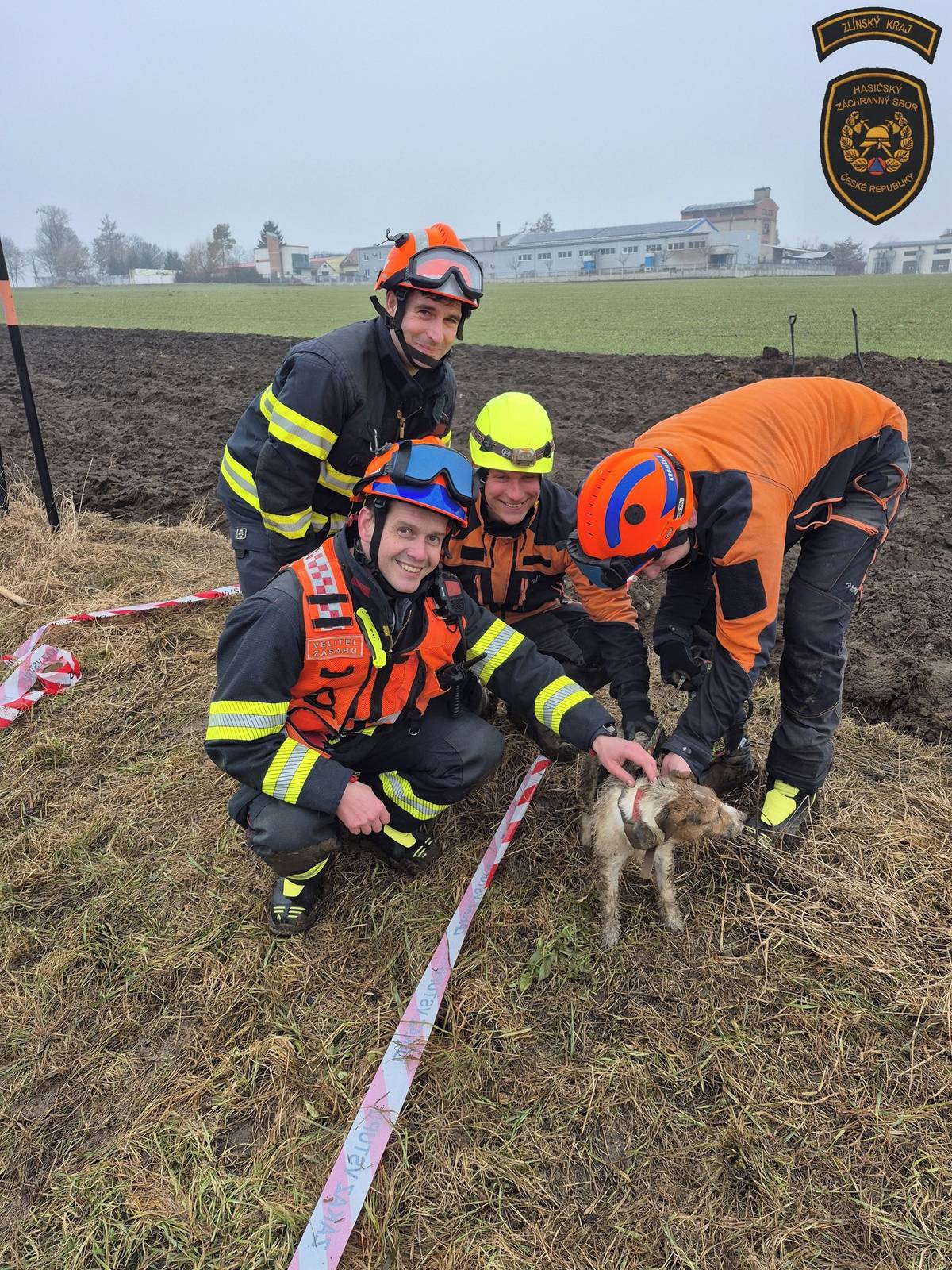 Hasiči zachraňovali psa uvízlého v betonové rouře na poli