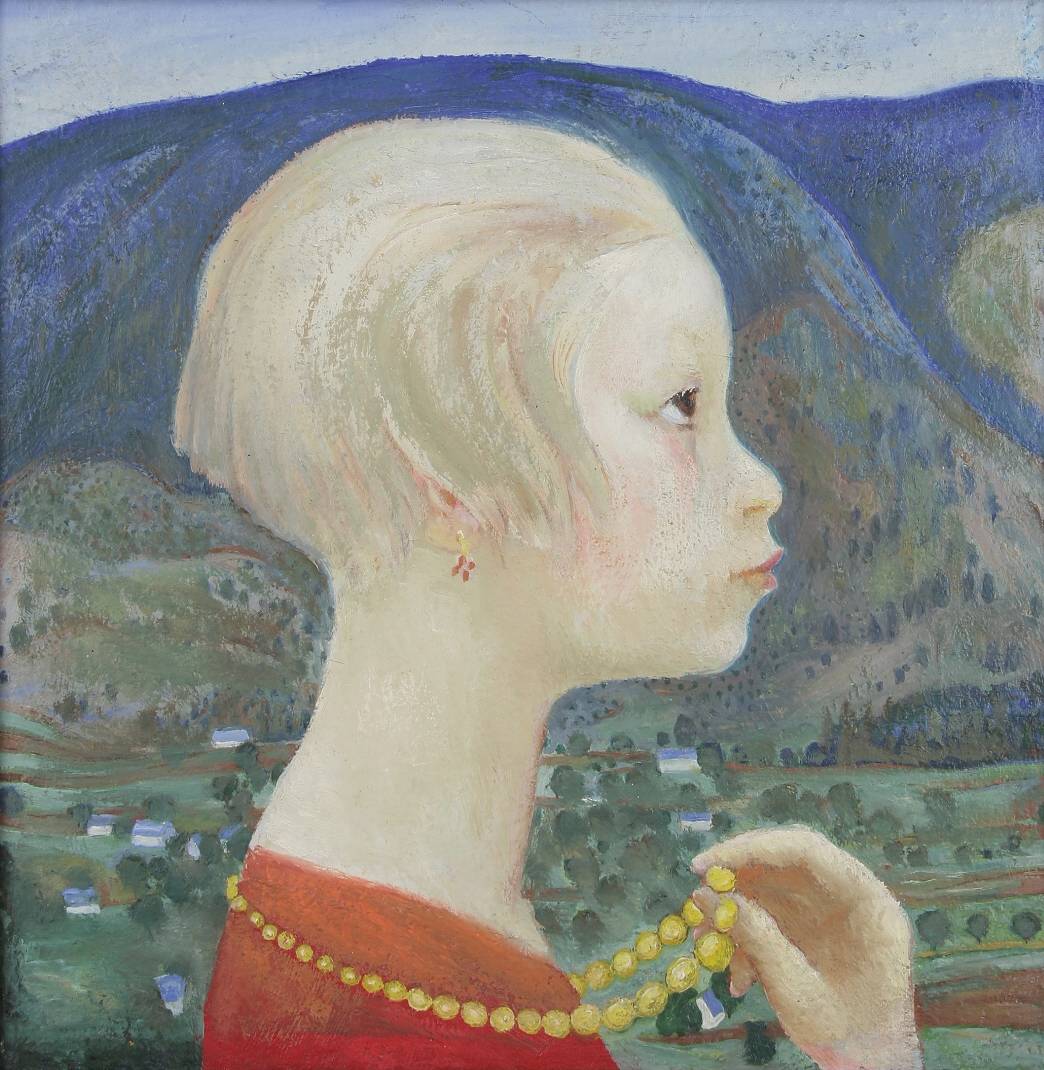 Erwin Müller: Děvče se žlutými korály, 1926, olej, plátno, Oblastní galerie Liberec.