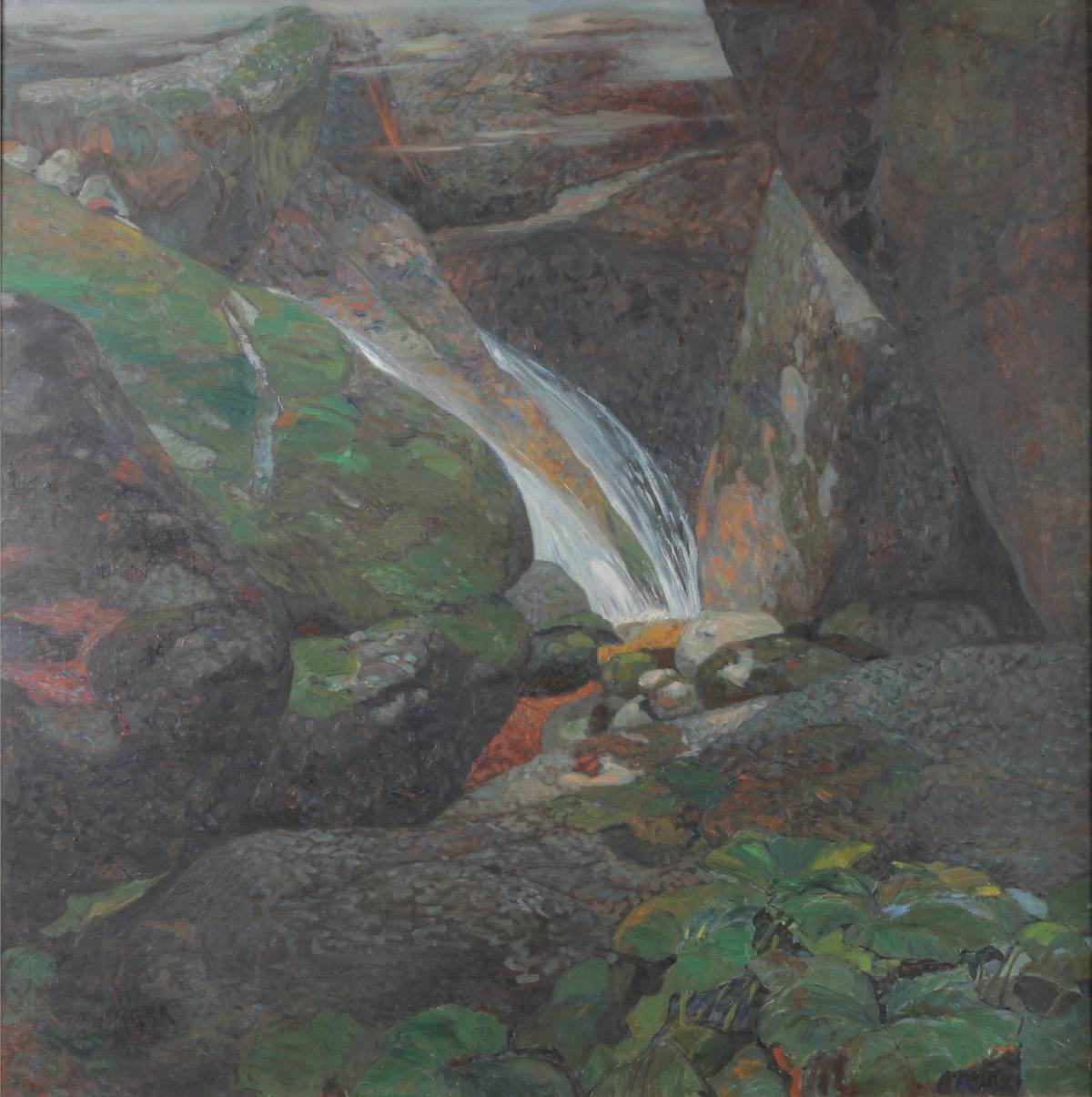 Wenzel Franz Jäger: Vodopád ve skalách, kolem 1910, olej na plátně, 112 × 112,5 cm, Národní památkový ústav, ÚPS na Sychrově, Státní zámek Zákupy.