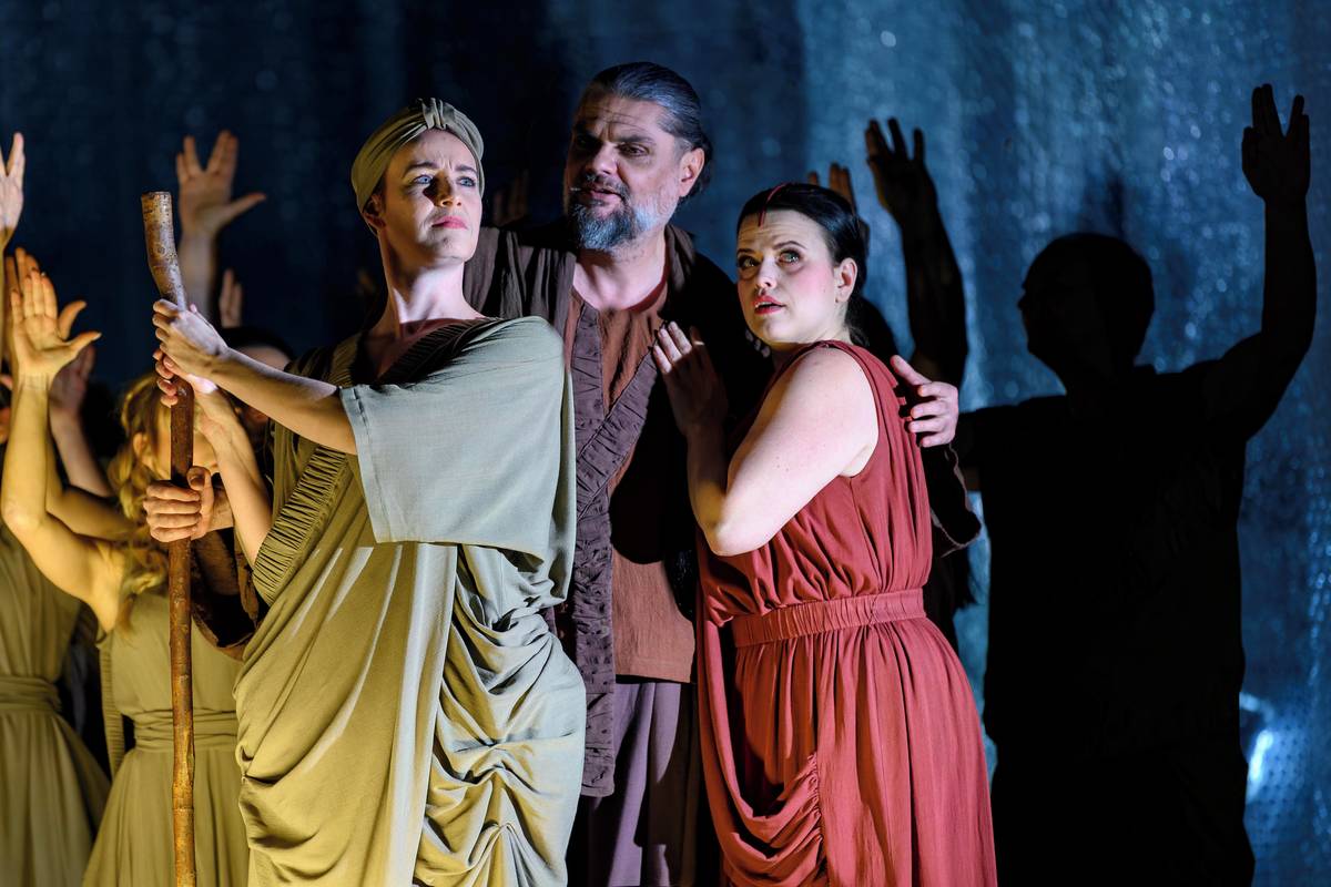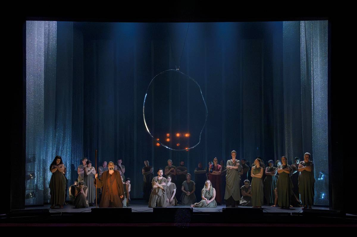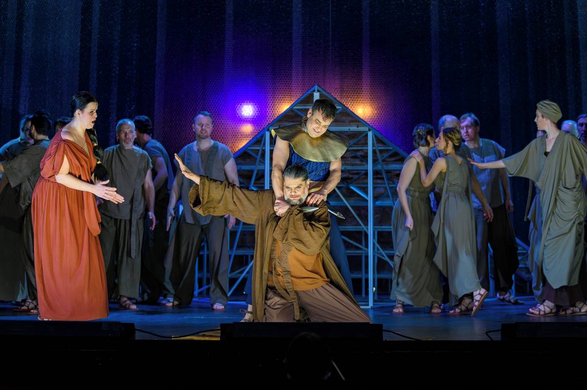 Na fotografii z inscenace opery Mojžíš a faraon, kterou tento čtvrtek uvede Národní divadlo moravskoslezské, je Martin Gurbaľ v roli Mojžíše.