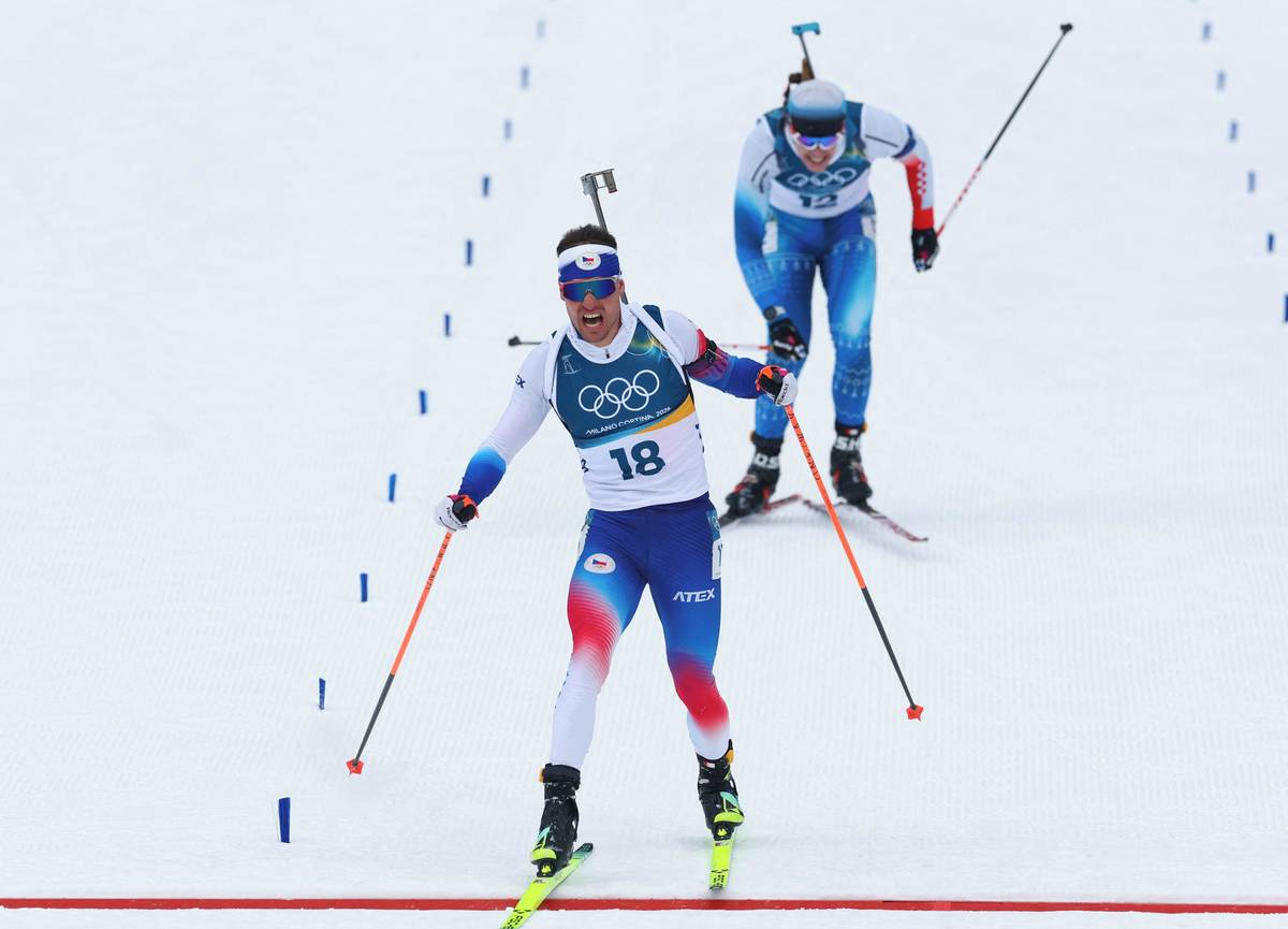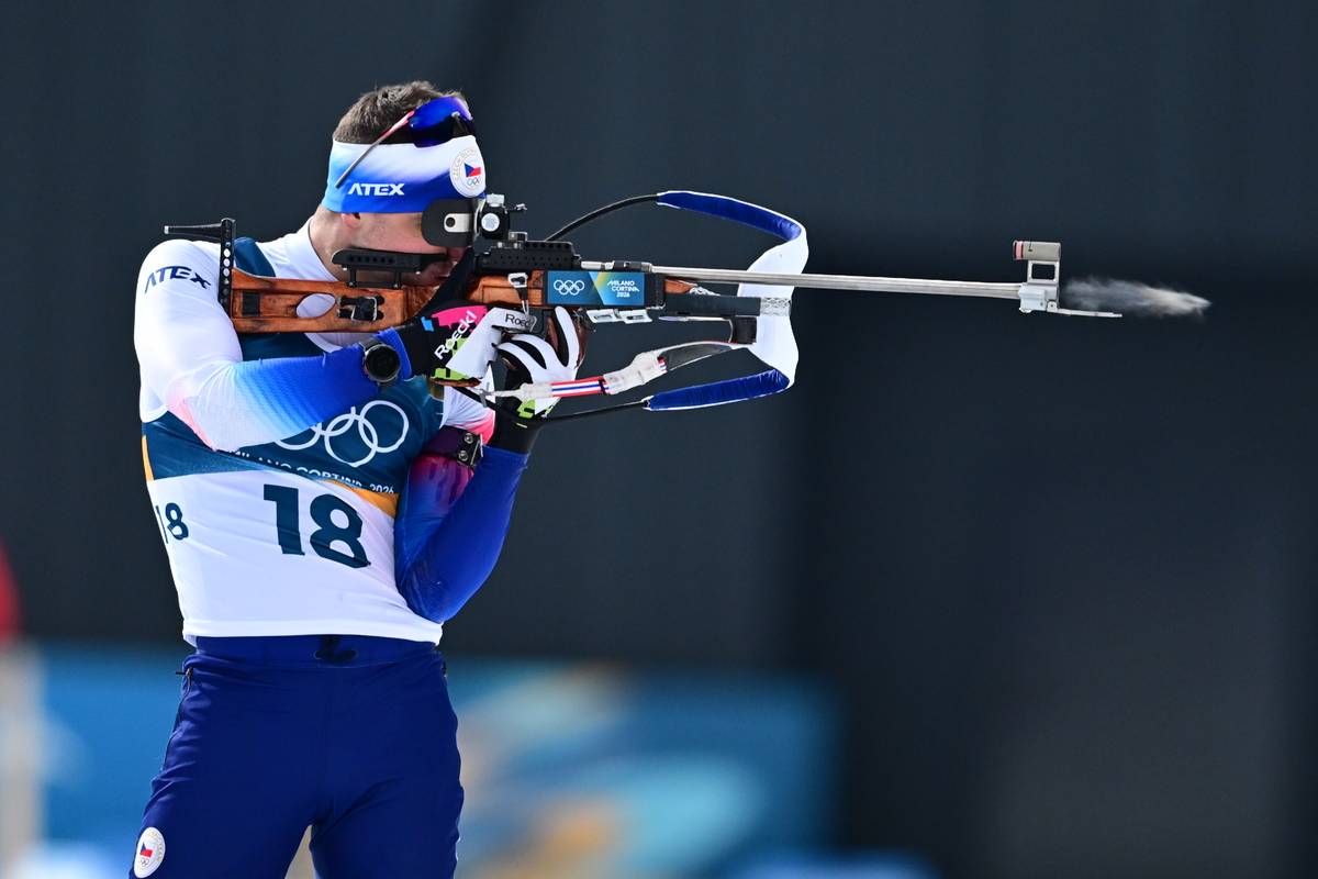 Michal Krčmář (s číslem 18) si vytrvalostní závod pokazil čtyřmi chybami na střelnici.