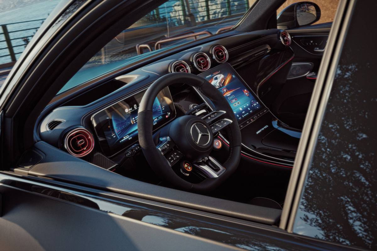 Nechybí sportovní přední sedadla s výrazným bočním vedením a logy AMG.