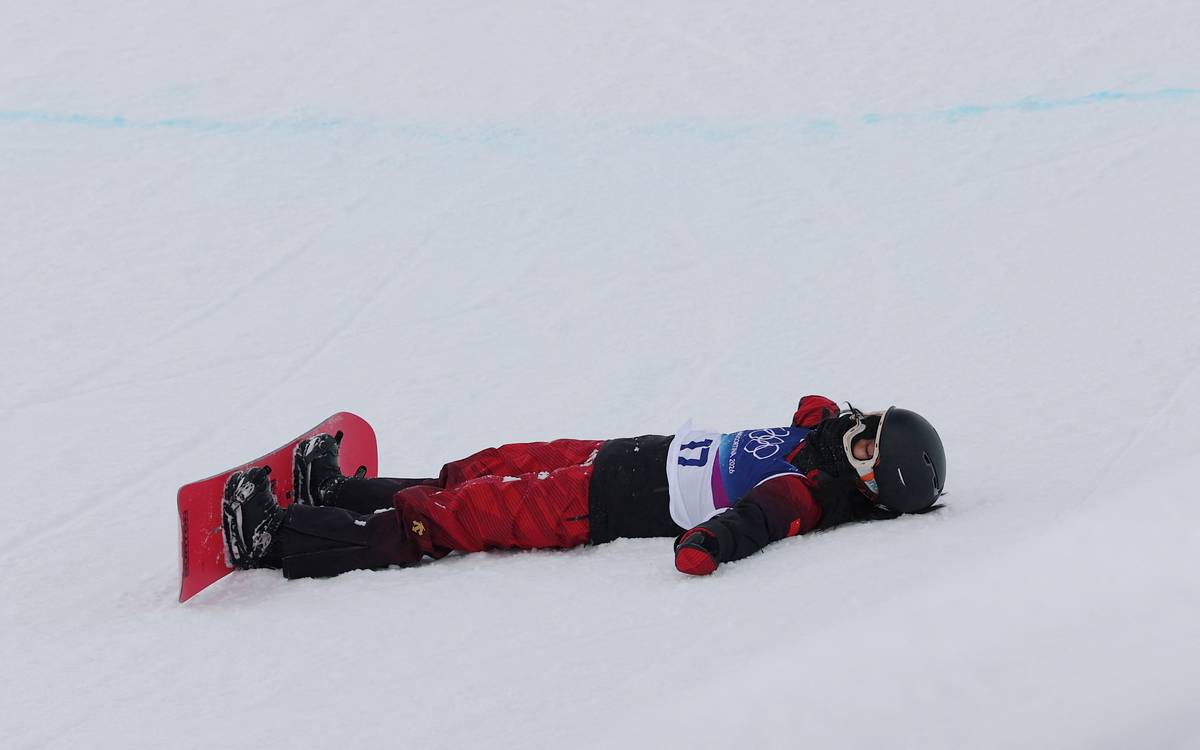 Číňanka Liou Ťia-jü po pádu v kvalifikaci v U-rampě.