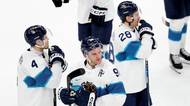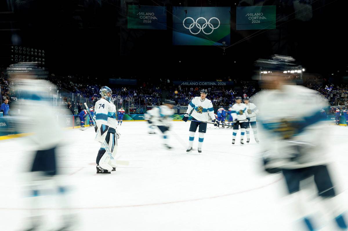 Hokejisté Finska při rozbruslení před zápasem se Slovenskem