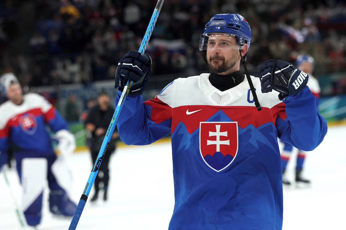 Juraj Slafkovský po vstřelené první brance na olympiádě