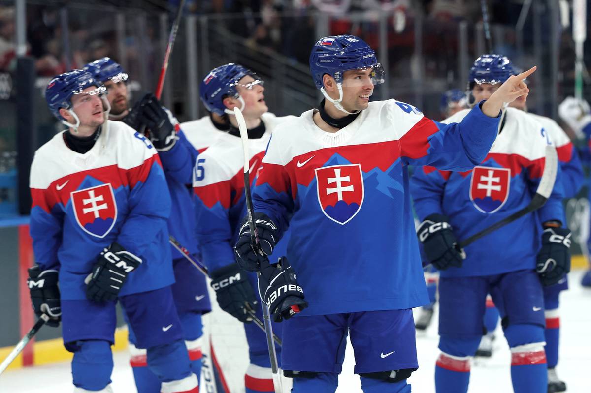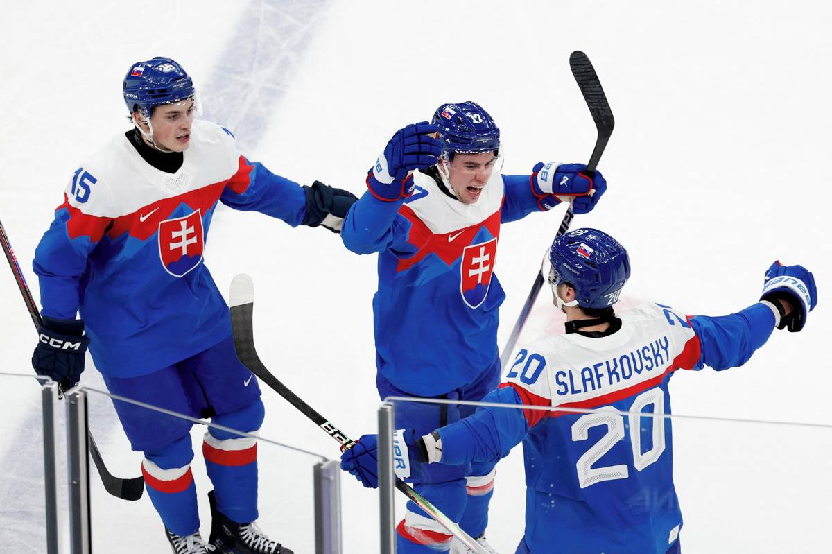Radost Juraje Slafkovského (vpravo) po výhře nad Finskem