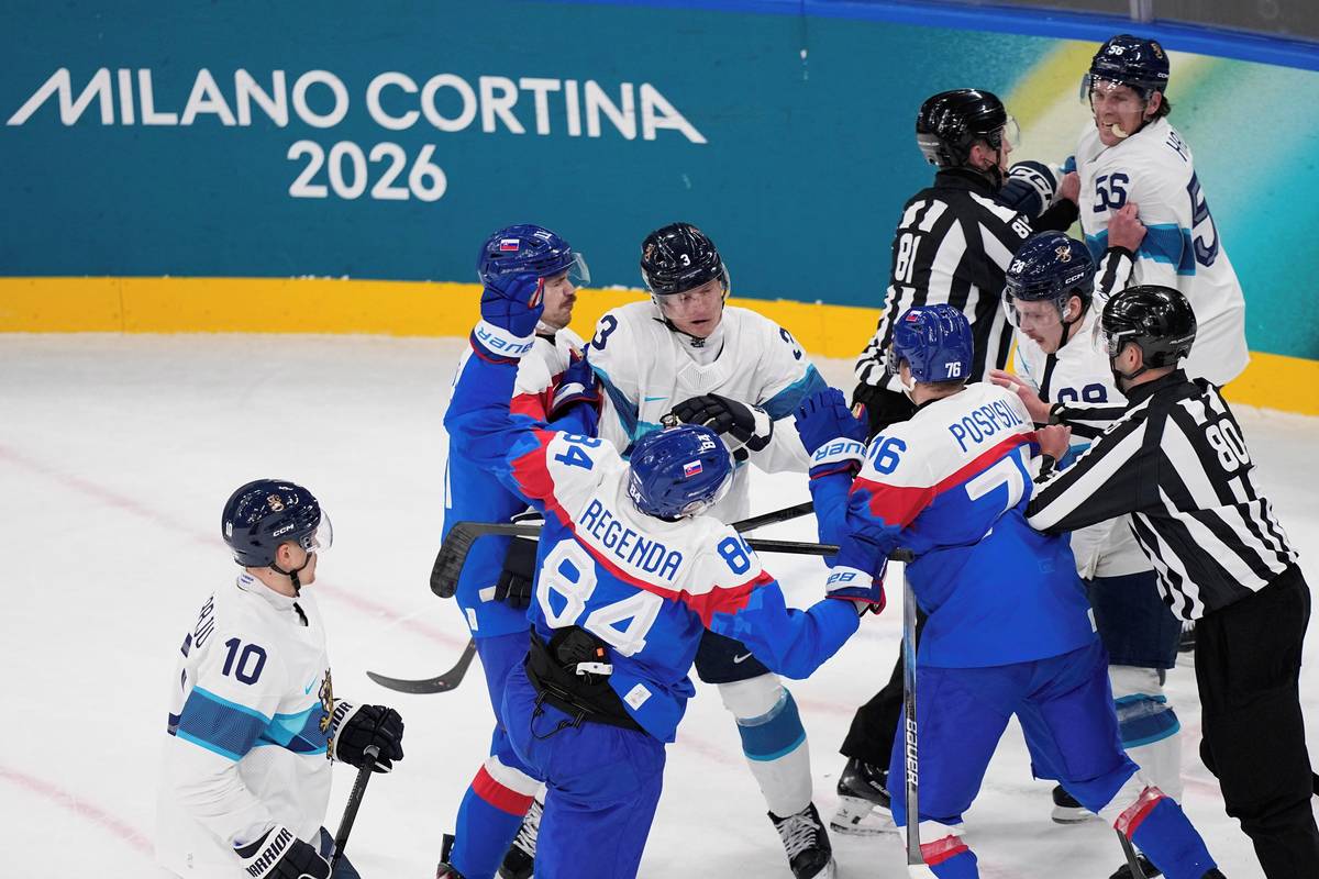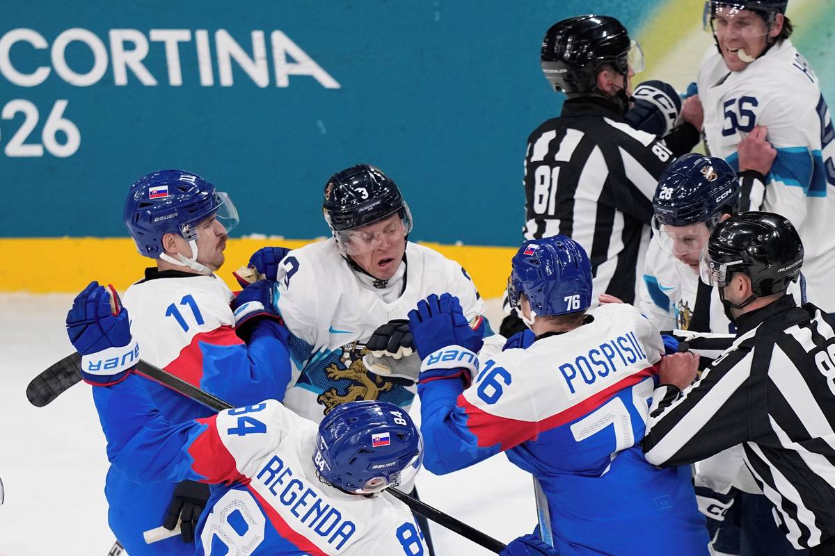 Závěr první třetiny zápasu Slovenska s Finskem přinesl potyčku