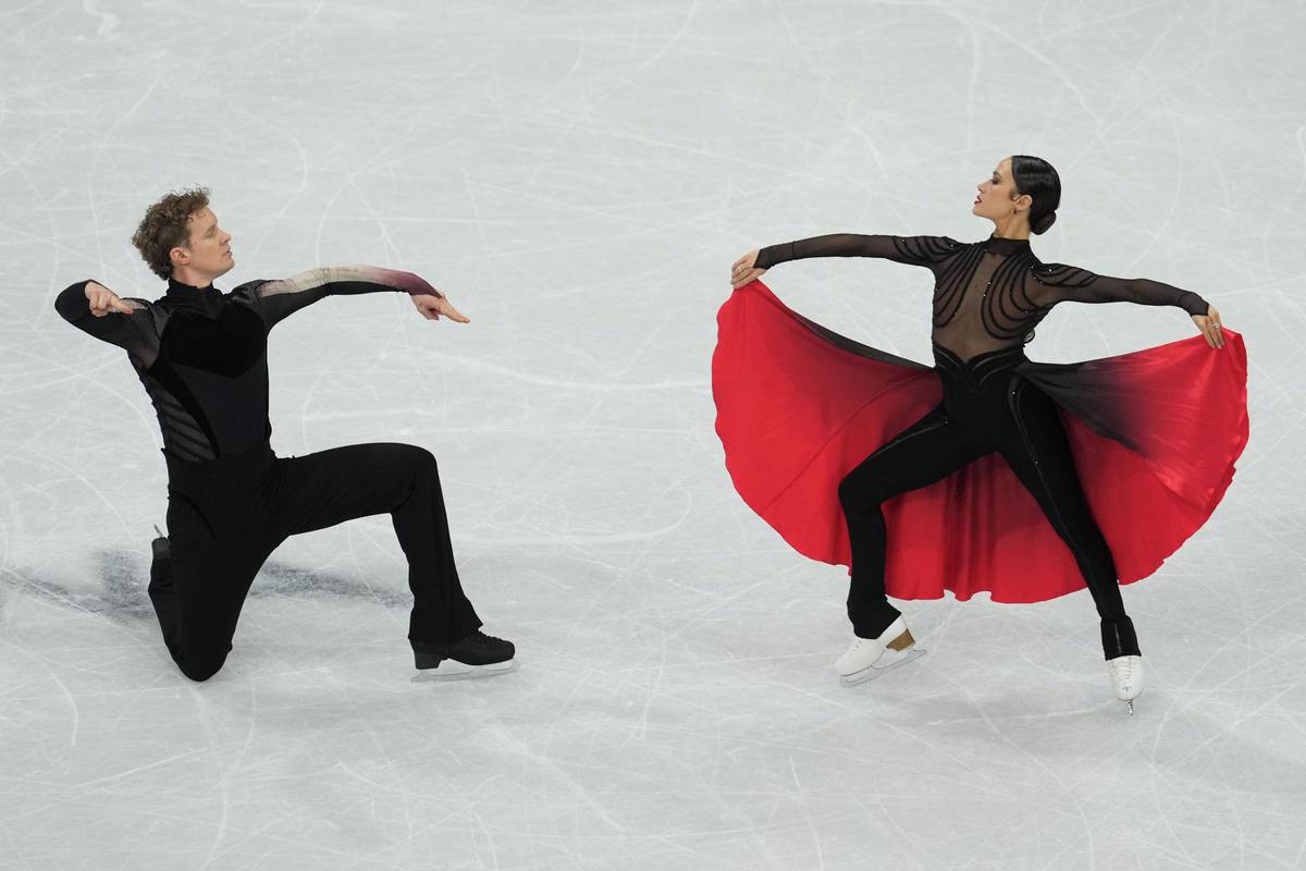 Američtí krasobruslaři Madison Chocková a Evan Bates předvedli skvělý volný tanec, na zlato to ale nestačilo.