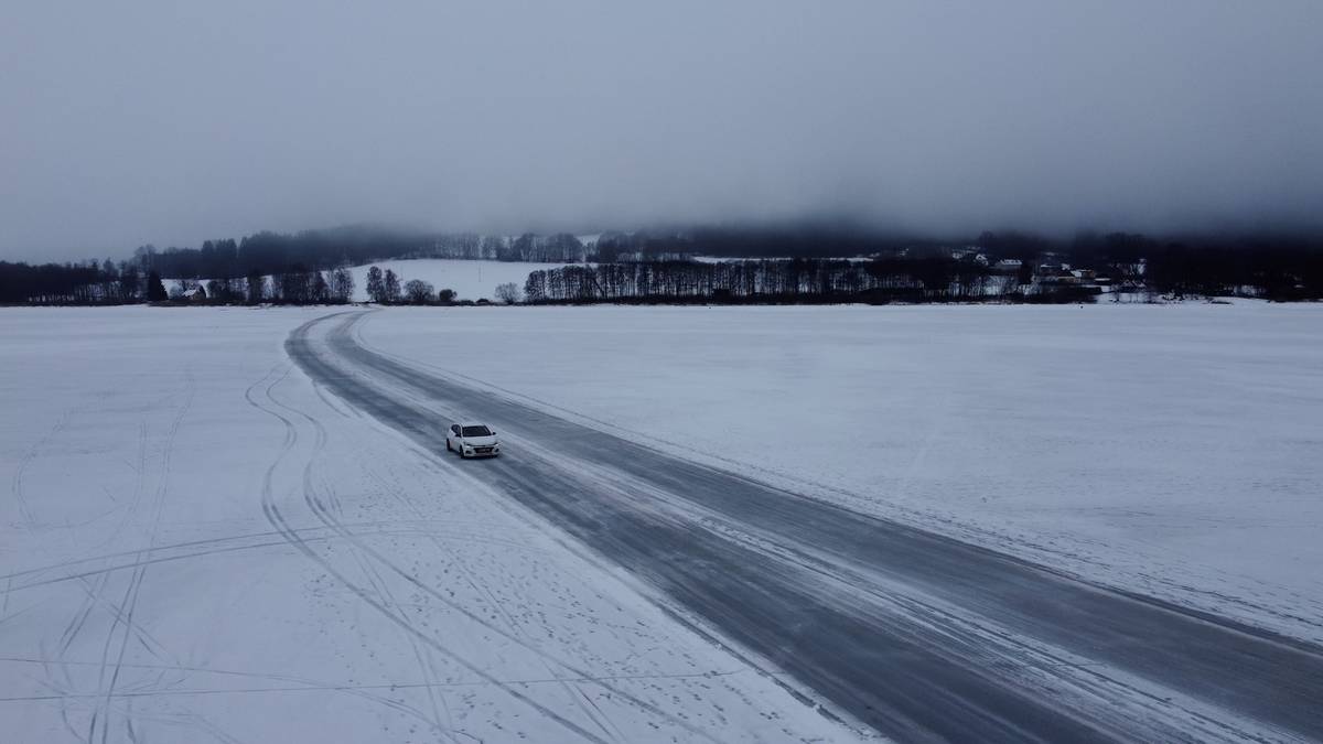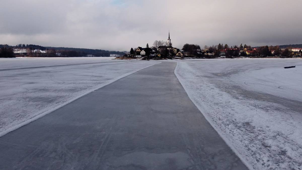 Ledový most mezi Horní Planou (vpravo) a Bližší Lhotou