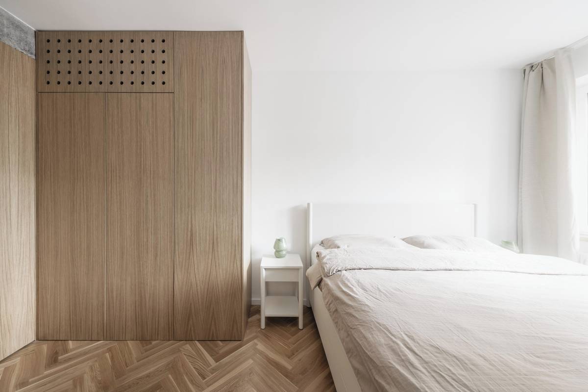 Interiér bytu je zařízený ve světlých barvách.