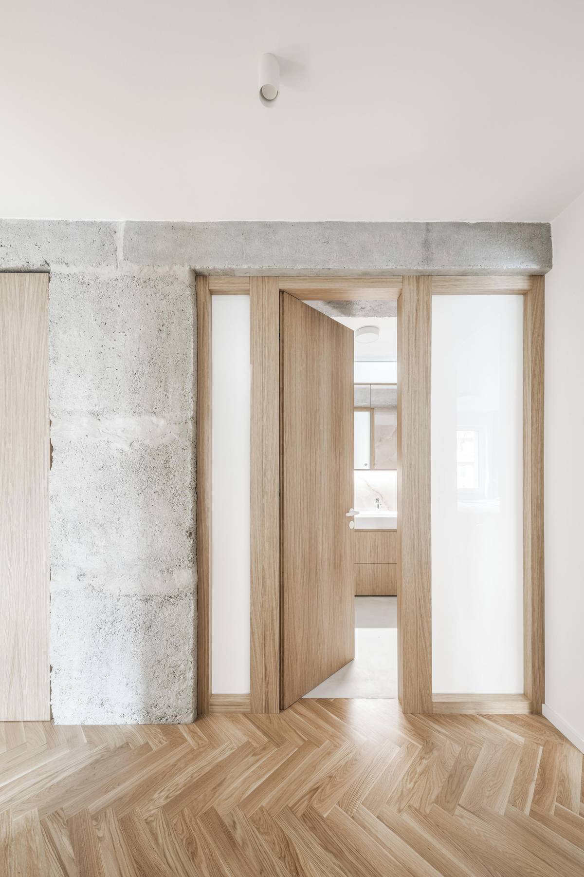 Bezzárubňové dveře sahají téměř až do výšky nosného systému.