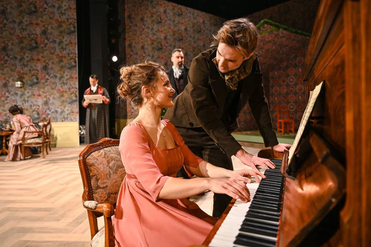Marianne v podání Nikol Wetterové, po uši zamilovaná do Johna Willoughbyho (Adam Gazdík), zpívá a hraje na klavír.