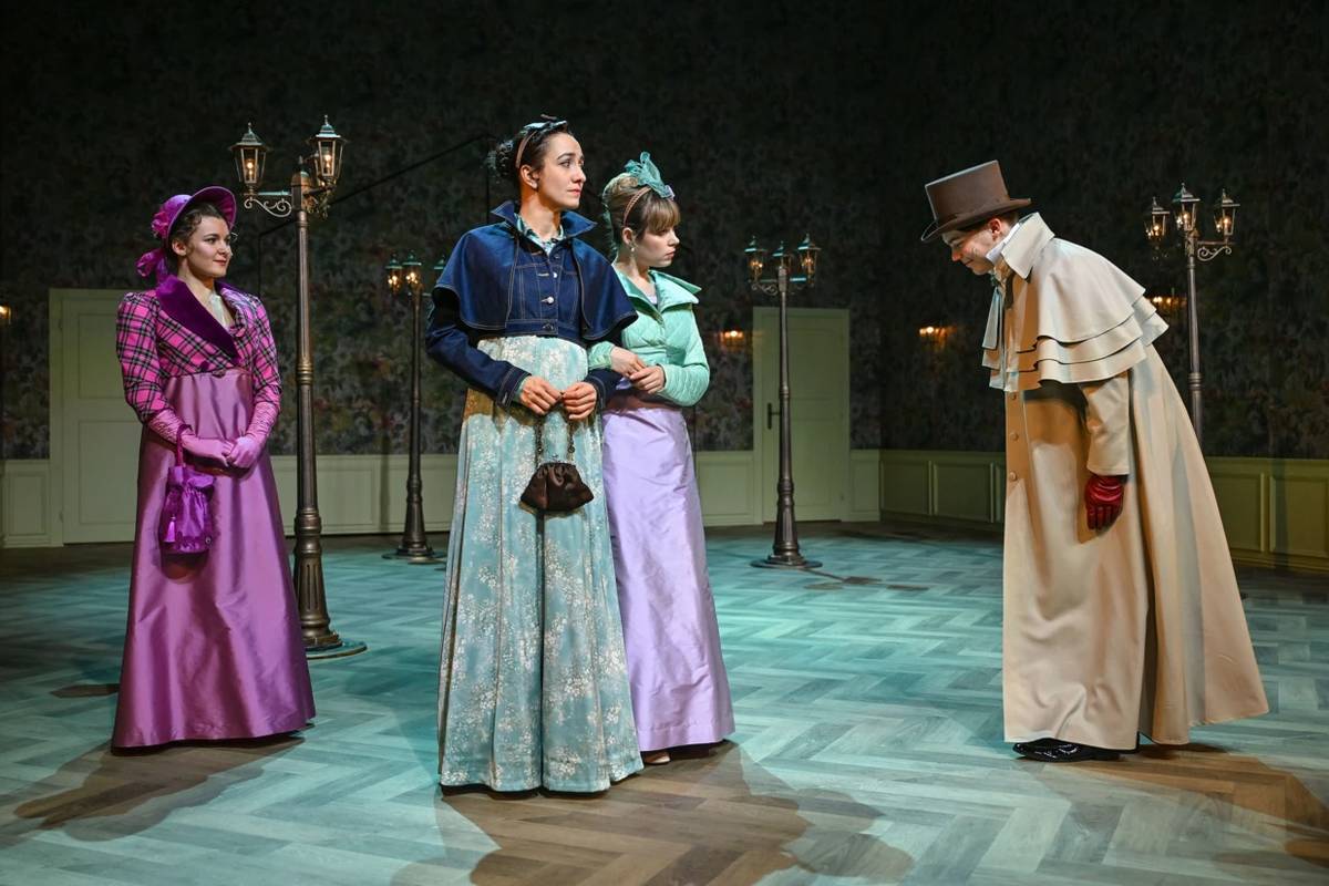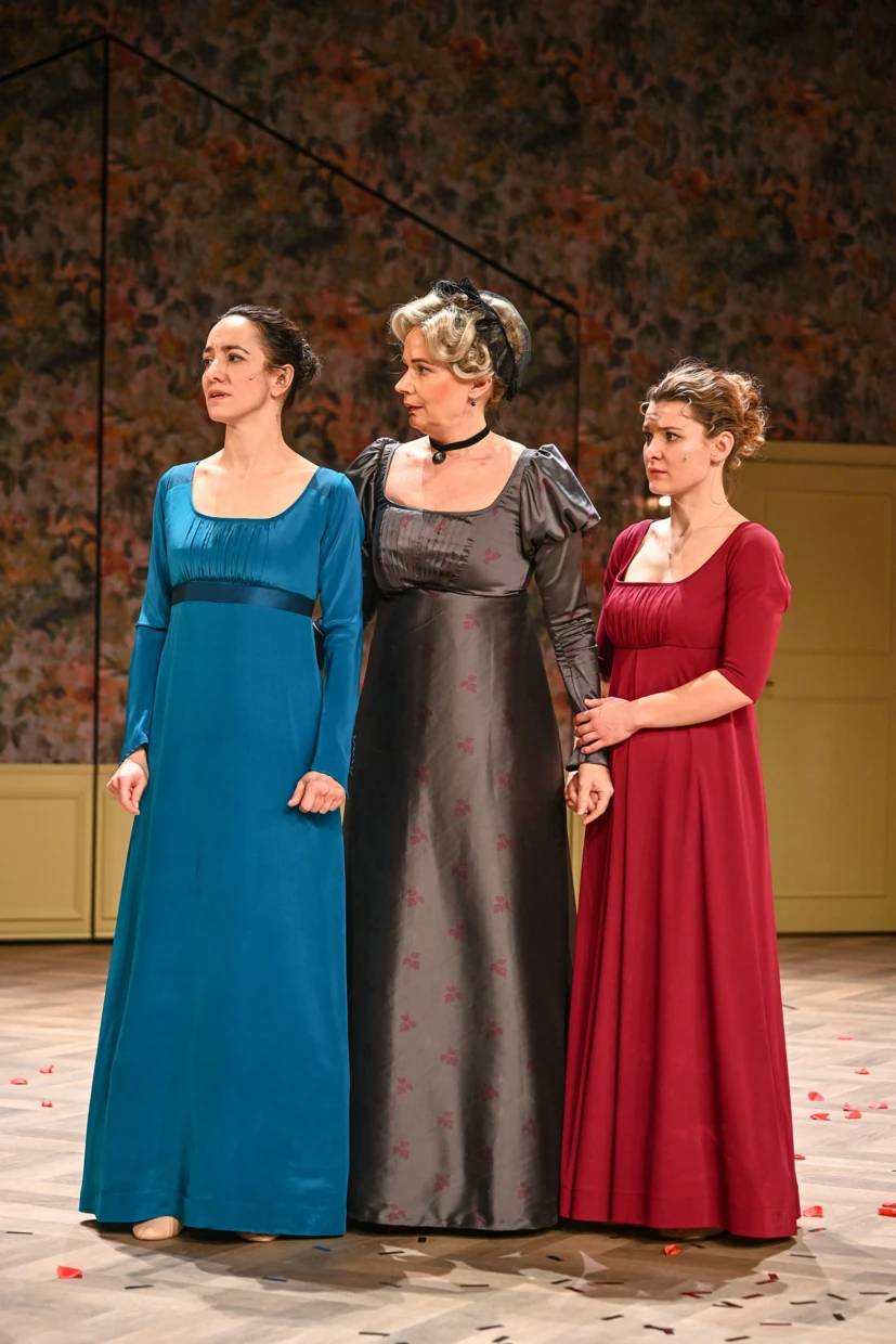 Svetlana Janotová jako Elinor (vlevo), Nikol Wetterová jako její sestra Marianne (vpravo) a Alena Antalová v roli jejich matky, paní Dashwoodové (uprostřed)