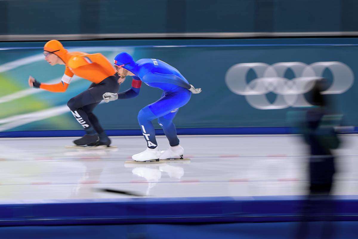 Reprezentant Polska Vladimir Semirunnij ve třetí jízdě před Nizozemcem Stijnem van de Buntem.
