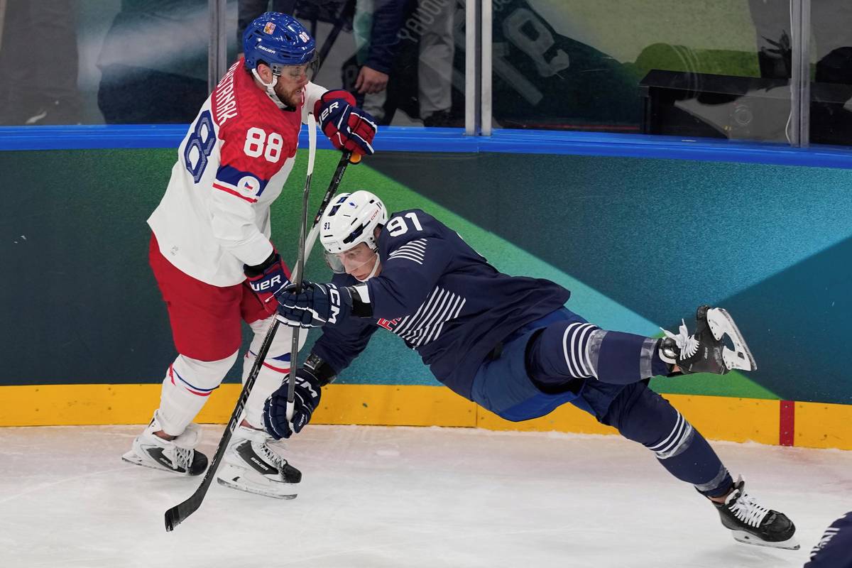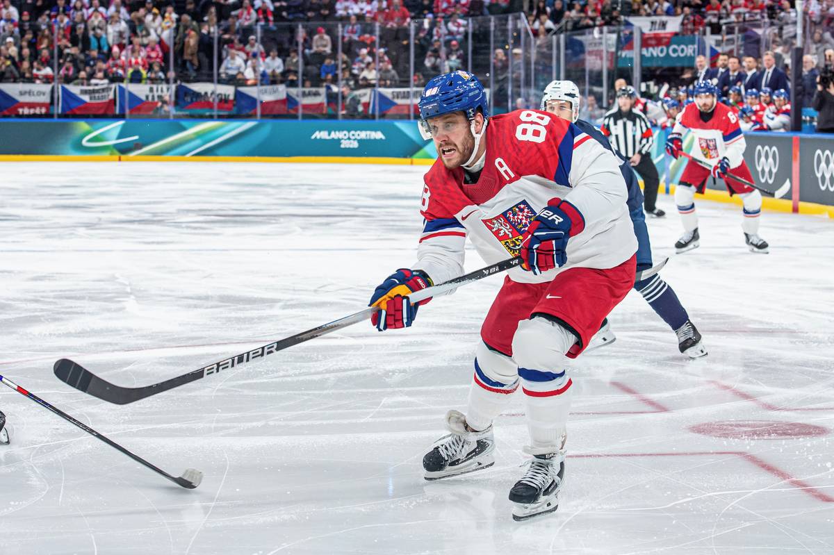 První přesilovku v zápase využil Martin Nečas (uprostřed).