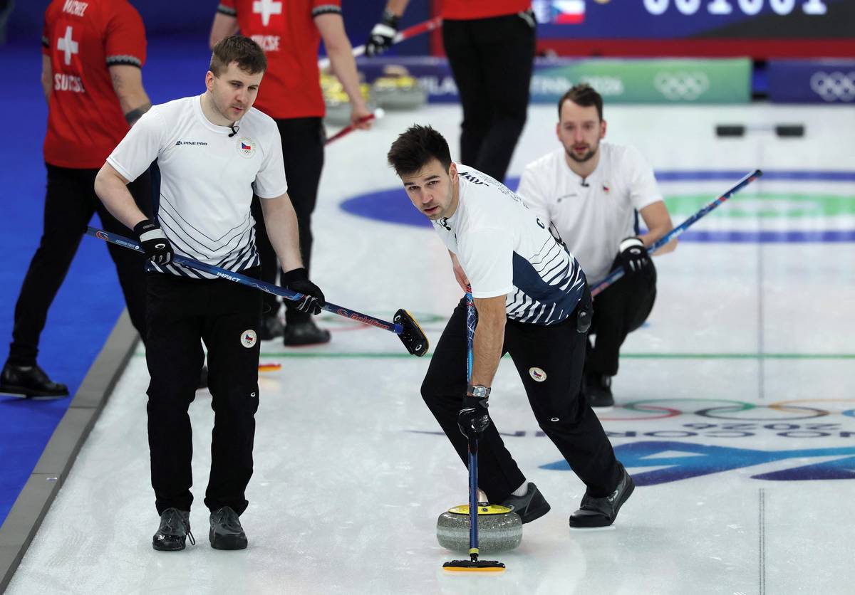 Češi hrají v curlingovém turnaji proti. Za favority uvádí první kameny do hry Pablo Lachat-Couchepin.