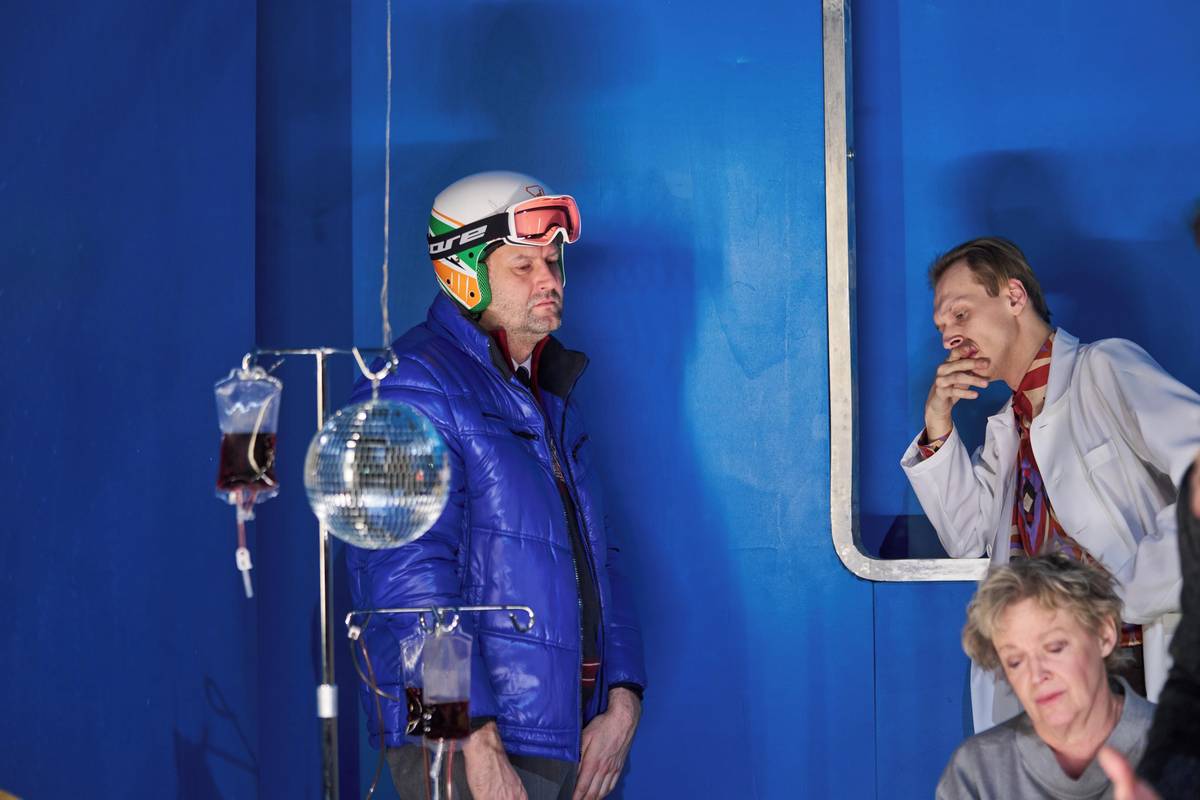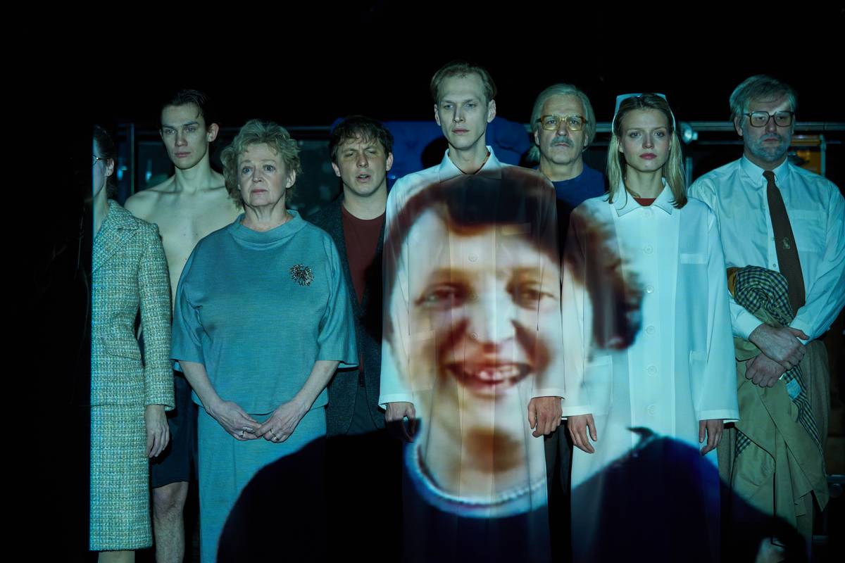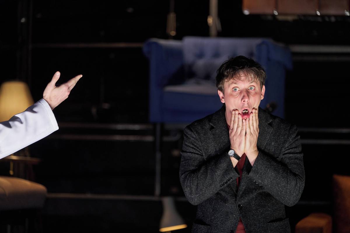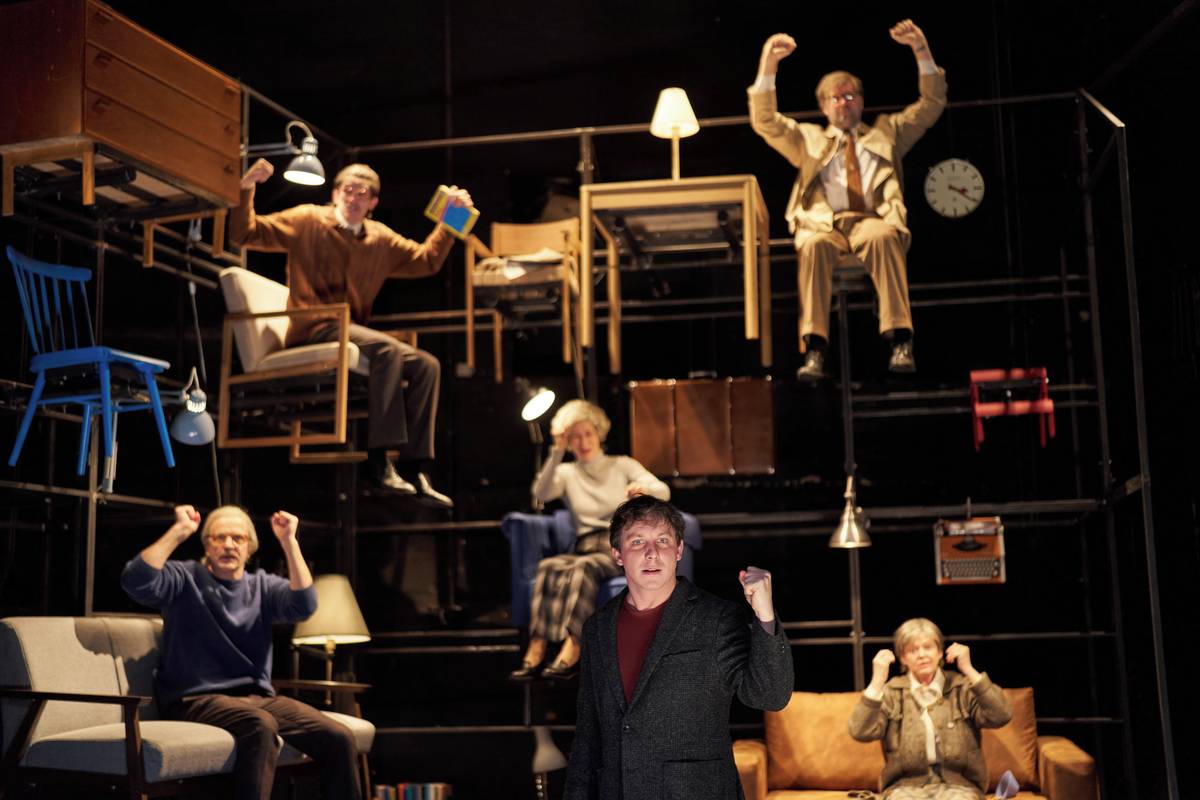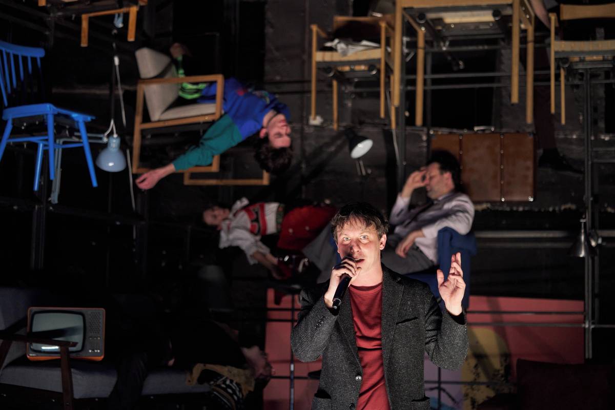 Na fotografii z inscenace Časokryt, která měla tento měsíc premiéru v pražském Divadle Na zábradlí, je v popředí Michal Bednář.