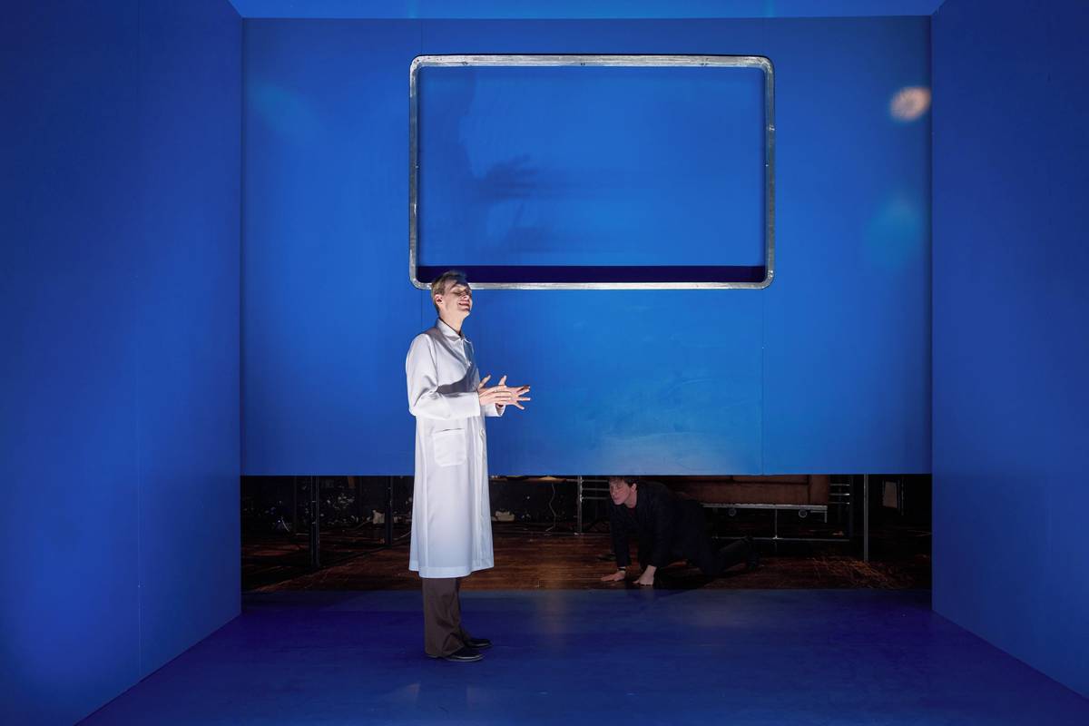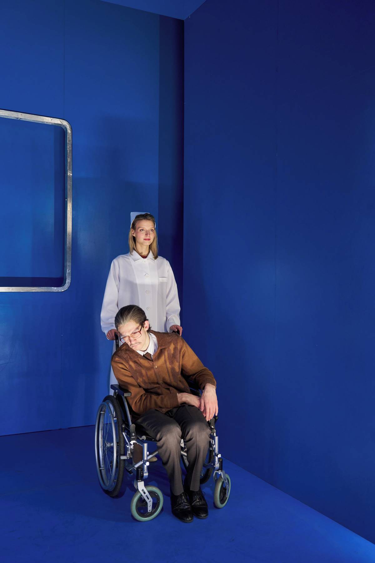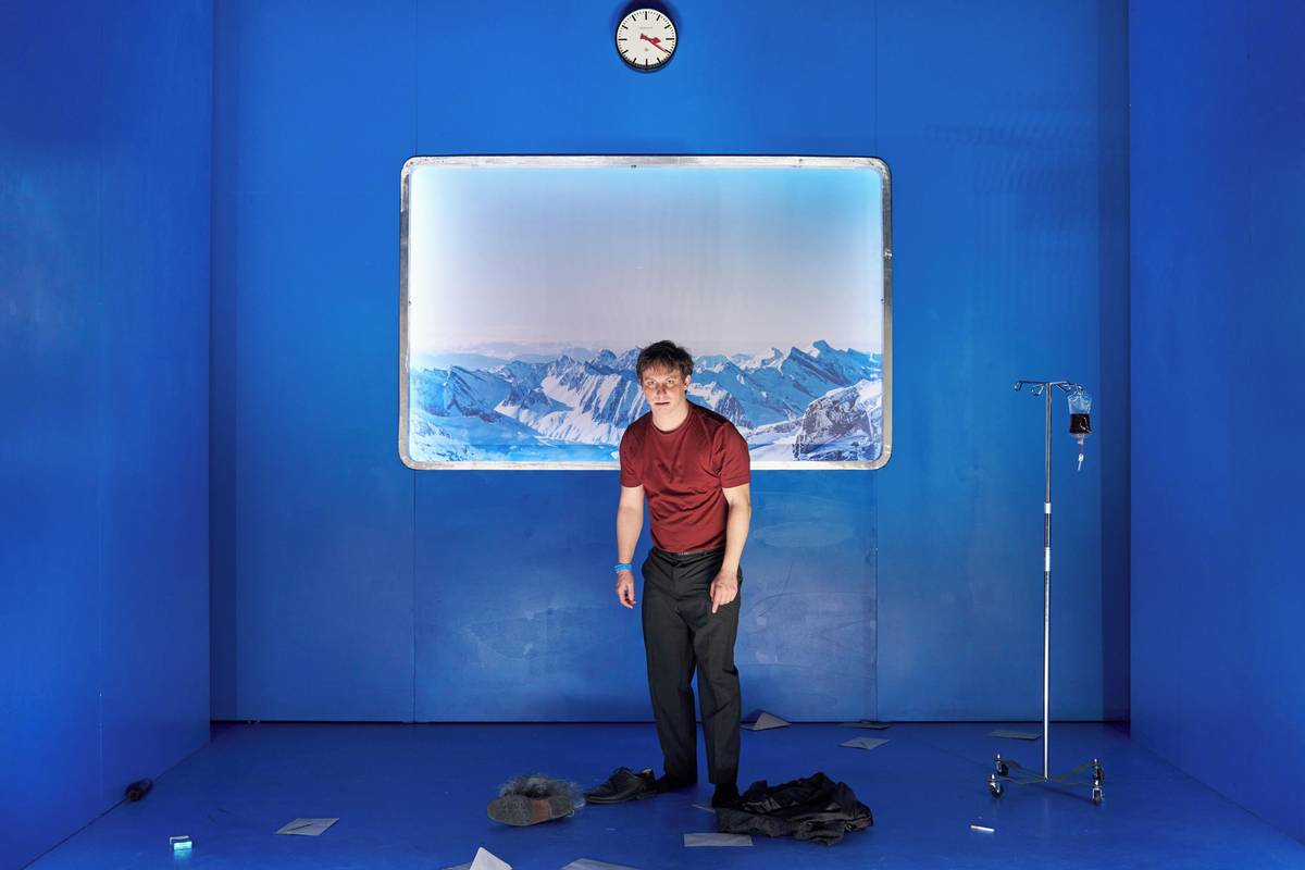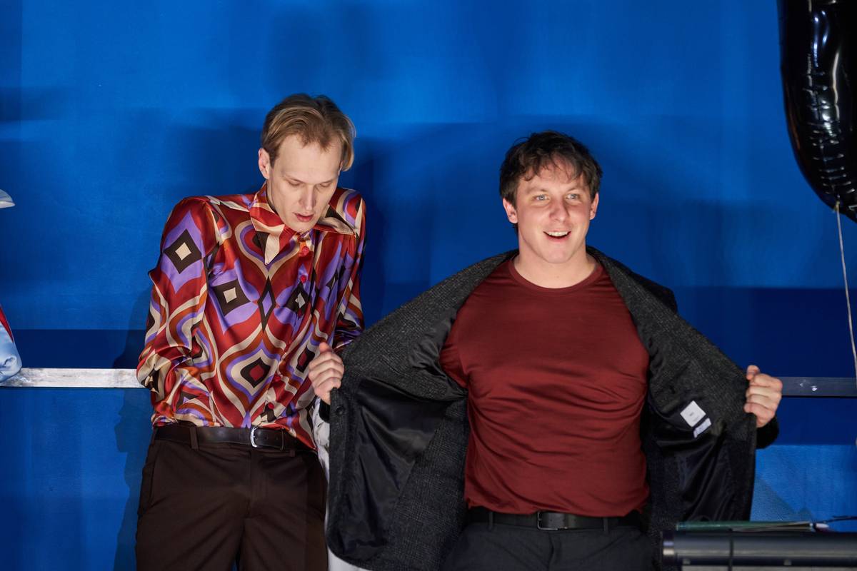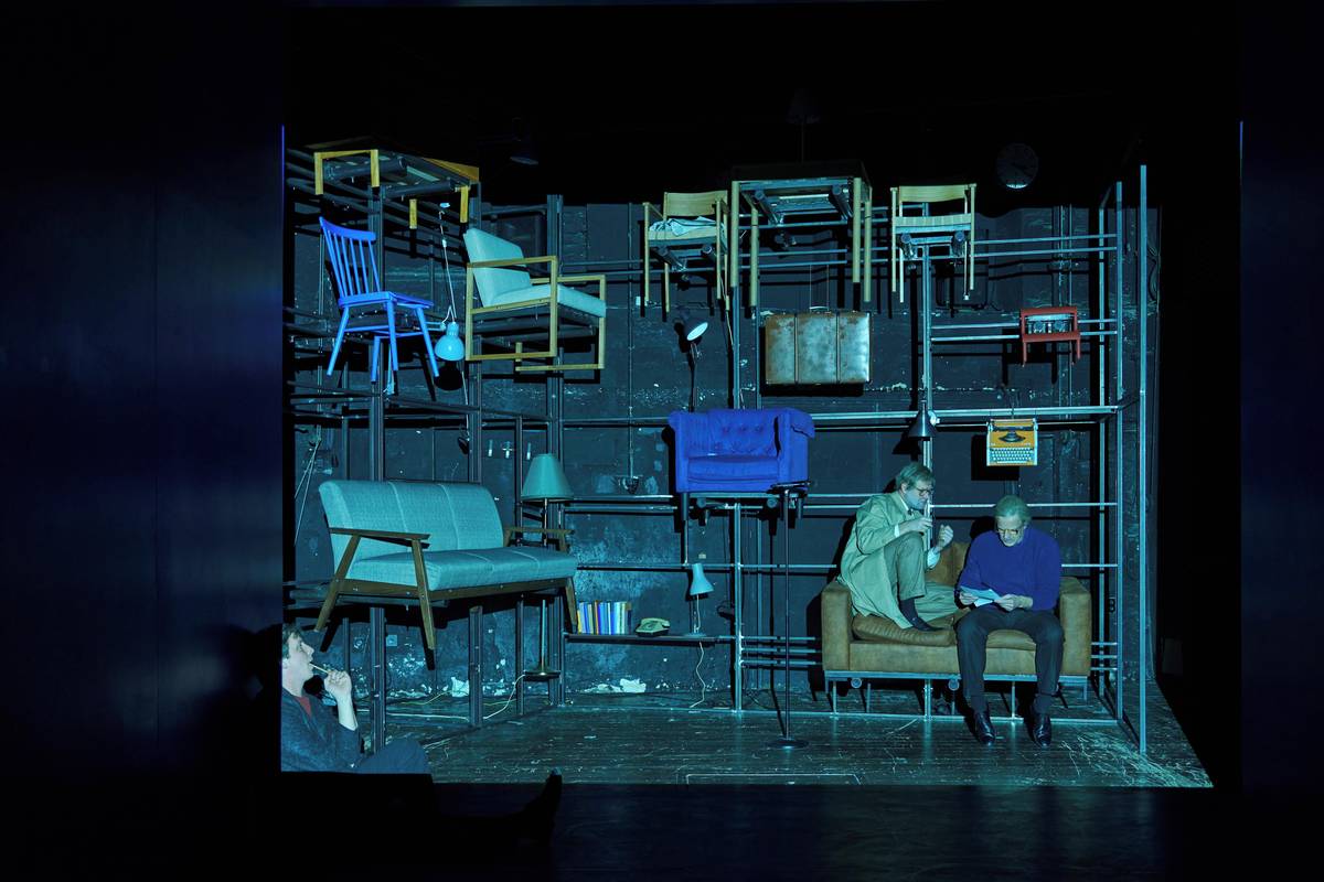 Na fotografii z inscenace Časokryt, která měla tento měsíc premiéru v pražském Divadle Na zábradlí, je v popředí Michal Bednář.