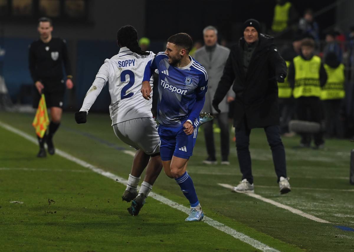 Sekou Fofana z Lausanne Sport s olomouckým Ahmadem Ghalim