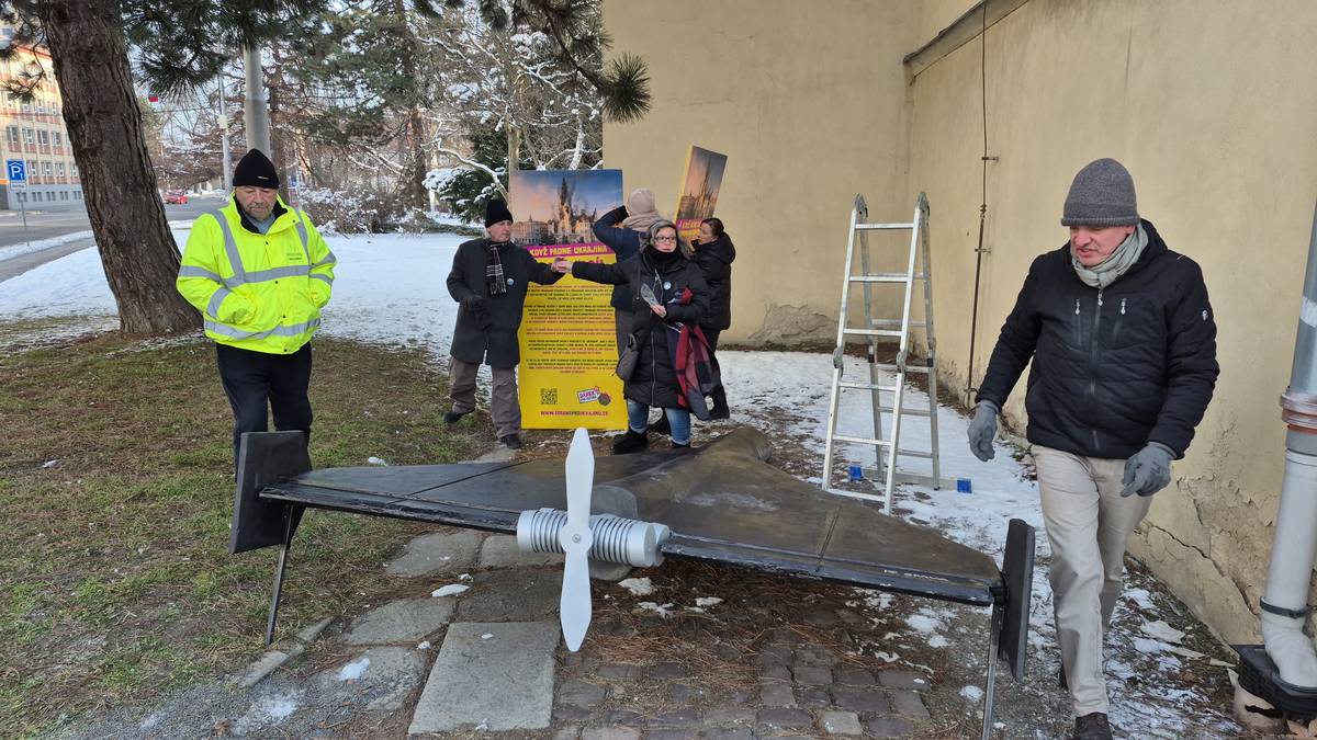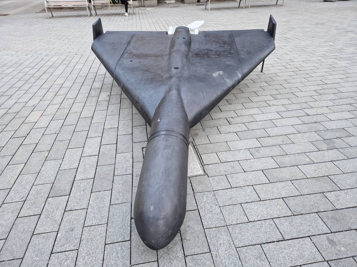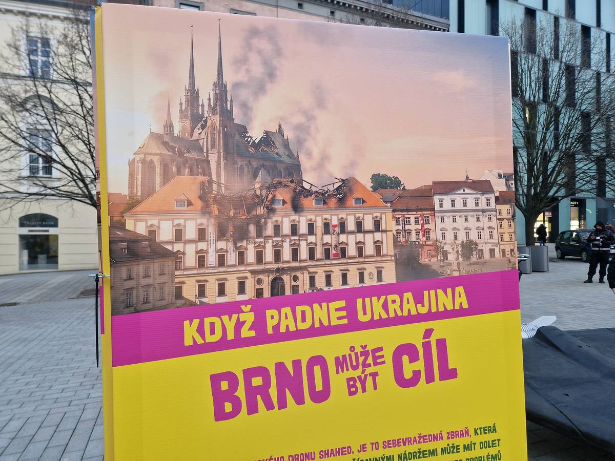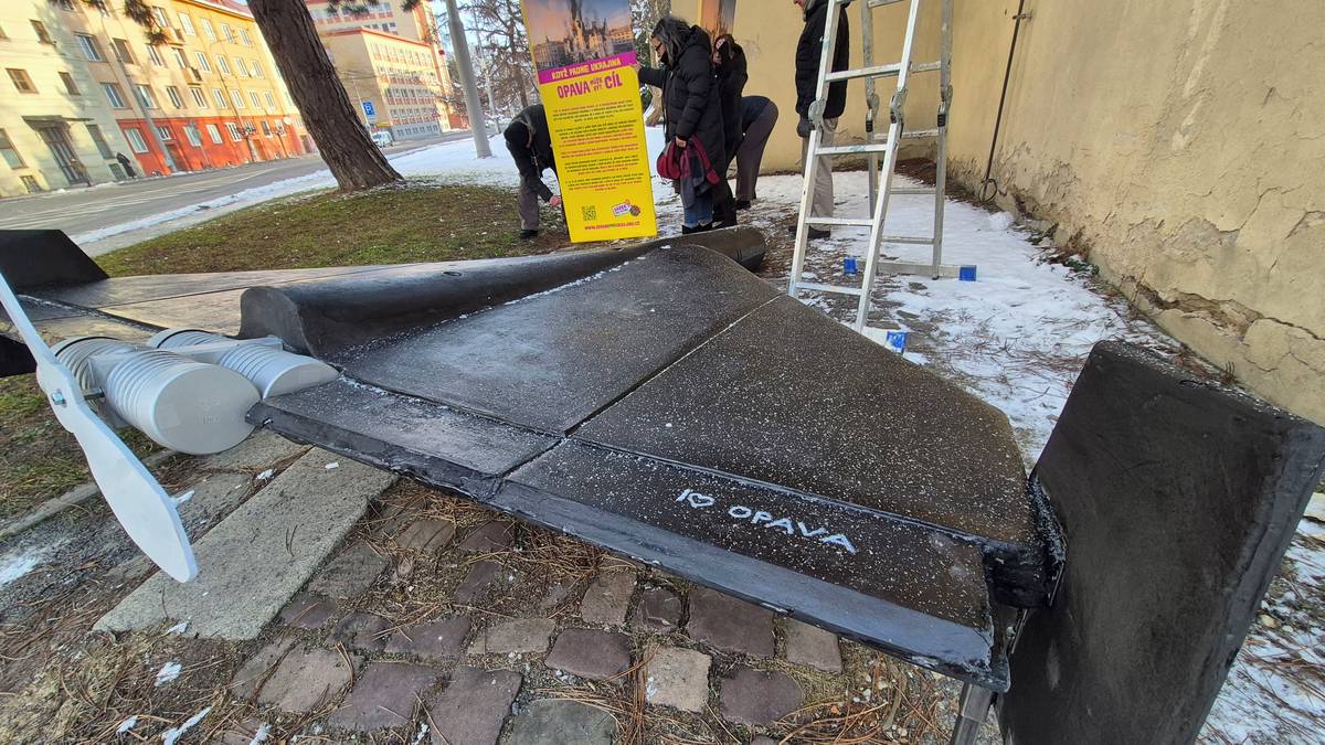 Maketa ruského dronu se v Brně objevila na náměstí Svobody poblíž brněnského orloje.