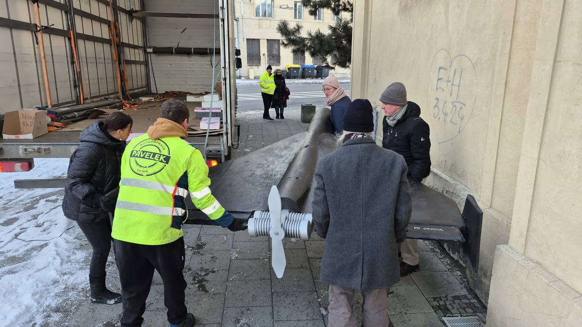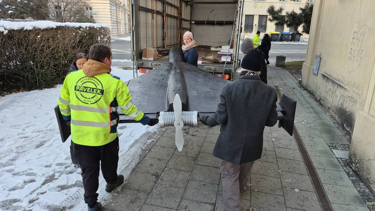 Maketa dronu v Brně přitáhla pozornost lidí.